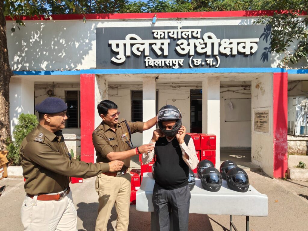 बिलासपुर,,, 22 जनवरी को सड़क सुरक्षा जागरूकता के अंतर्गत पुलिस अधीक्षक कार्यालय में हेलमेट वितरण कार्यक्रम का आयोजन किया गया! जिसमें पुलिस अधीक्षक रजनेश सिंह (आईपीएस) ने समस्त कार्यालय और थाना स्टाफ को निशुल्क हेलमेट प्रदान किए! इस कार्यक्रम का मुख्य उद्देश्य सड़क सुरक्षा के प्रति जागरूकता बढ़ाना और हेलमेट के महत्व को समझाना था!