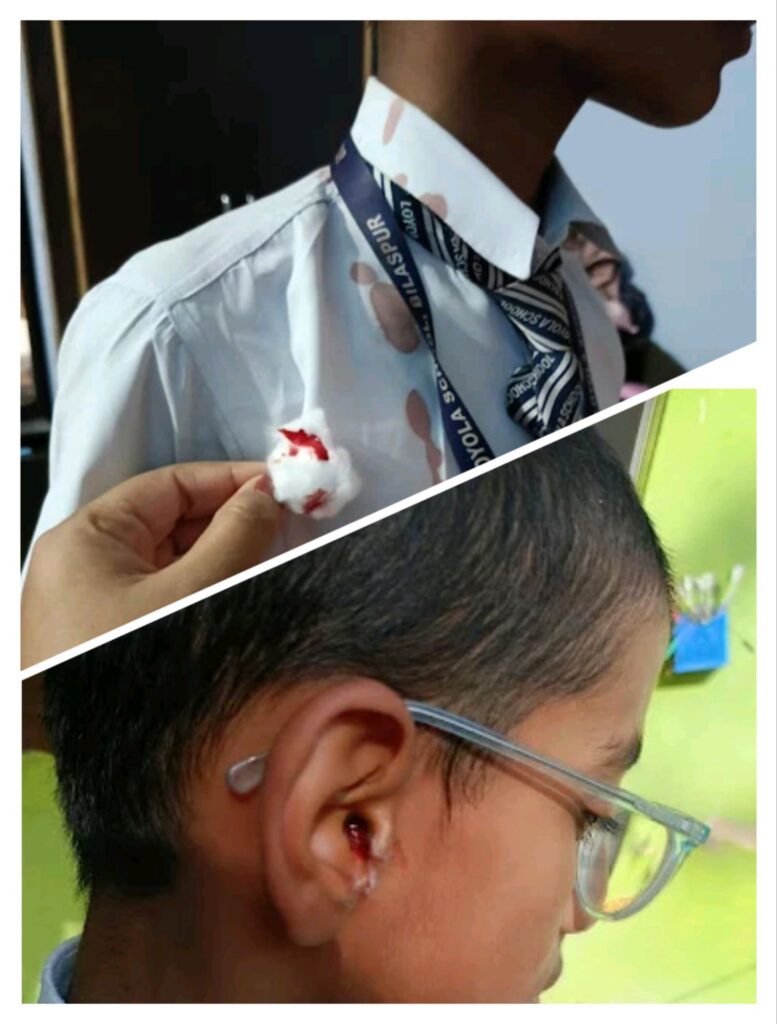बिलासपुर,,, सरकंडा स्थित लोयला स्कूल में शिक्षक की क्रूरता और स्कूल प्रबंधन की लापरवाही ने सभी को हैरान कर दिया है! मामला 8 वीं कक्षा के एक छात्र से जुड़ा है! जिसे स्कूल के शिक्षक ने इतनी बुरी तरह प्रताड़ित किया कि छात्र के कान से खून बहने लगा! यह घटना उस समय हुई जब छात्र क्लास में शिक्षक के निर्देशों का पालन करते हुए बैठा था! लेकिन अचानक उसने पीछे मुड़कर देखा! जिससे शिक्षक का गुस्सा भड़क गया! और शिक्षक ने छात्र का कान इतनी जोर से मरोड़ा कि उसके कान से खून बहने लगा! इस दर्दनाक घटना को देखकर क्लास में मौजूद सभी बच्चे डर गए!