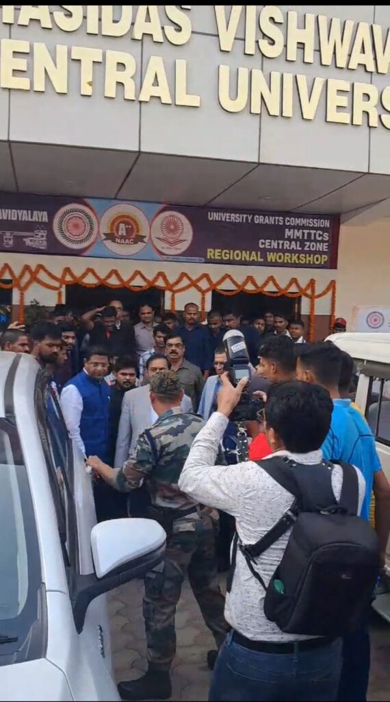 बिलासपुर,,, गुरुघसीदास सेंट्रल यूनिवर्सिटी (GGU) कोनी में एक कार्यक्रम के दौरान छात्रों के दो गुटों के बीच जमकर मारपीट हुई! इस घटना का एक वीडियो सोशल मीडिया पर वायरल हो रहा है!
