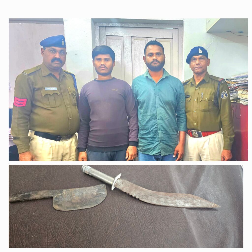 बिलासपुर,,, सीपत थाना पुलिस ने एक बड़ी कार्रवाई करते हुए दो बदमाशों को गिरफ्तार किया है! जिनके खिलाफ आर्म्स एक्ट के तहत मामले दर्ज किए गए हैं! दोनों आरोपियों पर पहले भी मारपीट के मामले दर्ज हैं! पुलिस ने इन बदमाशों से धारदार हथियारों, चापड और खुखरी को जप्त किया और उन्हें जेल भेज दिया है! यह कार्रवाई 4 फरवरी शाम के समय हुई जब पुलिस को मुखबिर से सूचना मिली कि ग्राम जांजी स्थित बस स्टैंड के पास दो व्यक्ति लोहे के बने धारदार चापड और खुखरी लहरा कर आम जनता को डरा-धमका रहे हैं! सूचना के बाद थाना प्रभारी गोपाल सतपथी के नेतृत्व में पुलिस टीम ने मौके पर घेरा बंदी की और दोनों आरोपियों को गिरफ्तार कर लिया! गिरफ्तार किए गए आरोपियों की पहचान मनीष कुर्रे उर्फ मोनू (उम्र 21 वर्ष) और आदर्श राय (उम्र 26 वर्ष) के रूप में हुई है! दोनों आरोपी अंबेडकर चैक ग्राम जांजी के निवासी हैं! पुलिस ने इनके पास से लोहे का चापड और खुखरी जप्त किया! मामले में पुलिस ने आरोपियों के खिलाफ भारतीय दंड संहिता की धारा 25, 27 आर्म्स एक्ट के तहत कार्रवाई करते हुए उन्हें न्यायिक रिमांड पर भेज दिया! आरोपियों के खिलाफ पहले भी कई मारपीट के मामले दर्ज हैं! और इनकी दहशत से स्थानीय लोग डर का सामना कर रहे थे! इस कार्यवाही में सीपत थाना प्रभारी निरीक्षक गोपाल सतपथी, सउनि भारत सिंह मरकाम, कमलफूल साहू, आरक्षक अमीर अंचल, शरद साहू एवं ज्ञानेष्वर यादव का विशेष योगदान रहा!