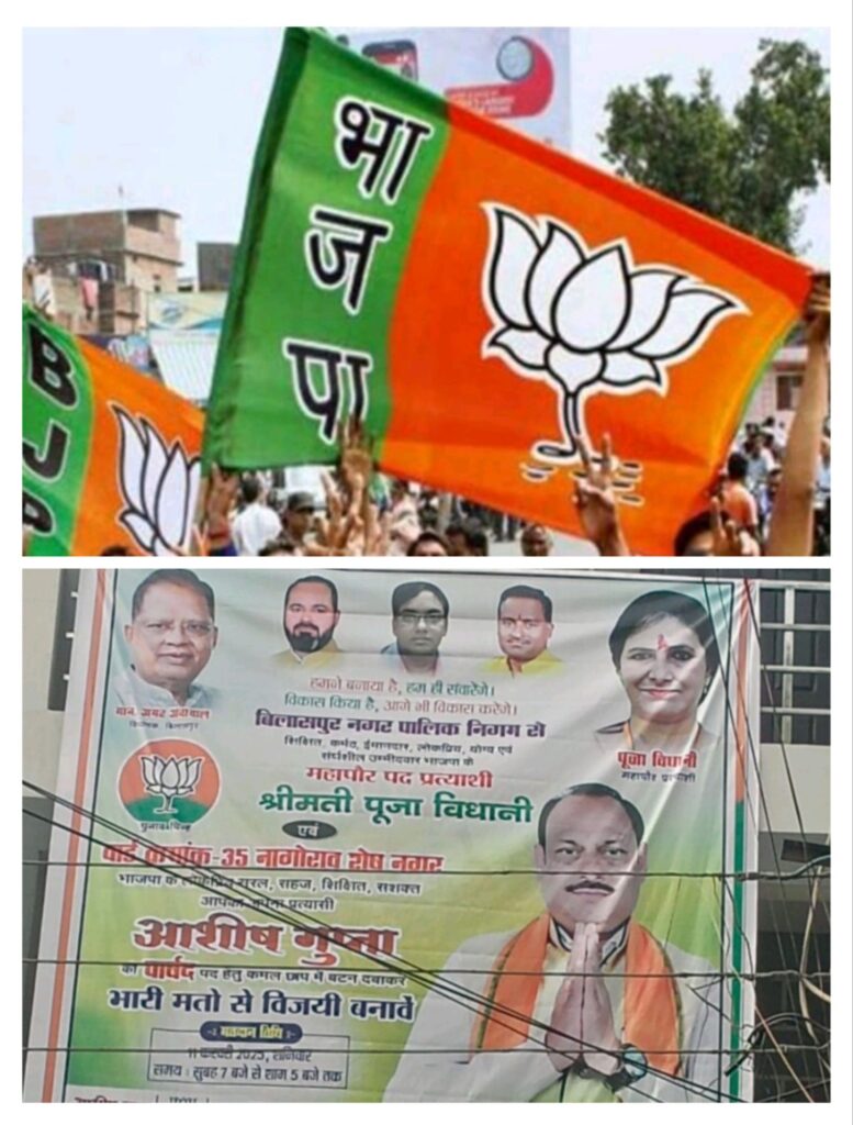 बिलासपुर,,, छत्तीसगढ़ में आगामी नगरीय निकाय चुनाव 2025 की तैयारियां जोरों पर हैं! भाजपा ने नगर निगम के महापौर पद के प्रत्याशी के रूप में पूजा विधानी और वार्ड 35 से पार्षद पद के लिए आशीष गुप्ता को उम्मीदवार घोषित किया है! सभी प्रत्याशी अपने-अपने चुनावी प्रचार में रैली, जनसंपर्क, और बैनर पोस्टर का उपयोग कर मतदाताओं से संपर्क साध रहे हैं!