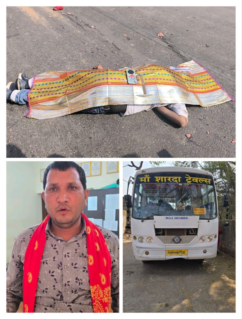 बिलासपुर,,, जिले के जरहागांव में बुधवार को एक दर्दनाक हादसा हुआ, जिसमें अपनी ही बस की चपेट में आने से परिचालक की मौत हो गई! जानकारी के अनुसार, मां शारदा ट्रेवल्स की बस (क्रमांक सीजी 10 ए क्यु 7732) दोपहर 1:30 बजे कवर्धा से बिलासपुर जा रही थी! और जब यह बस जरहागांव पहुंची, तब बस का परिचालक राममिलन तिवारी सवारी बिठा रहे थे! वह मोबाइल फोन पर बात करते हुए सवारी बिठा रहे थे! तभी वह यात्री से टकरा गए और बस के चक्के के नीचे आ गए, जिससे उनकी मौके पर ही मौत हो गई!