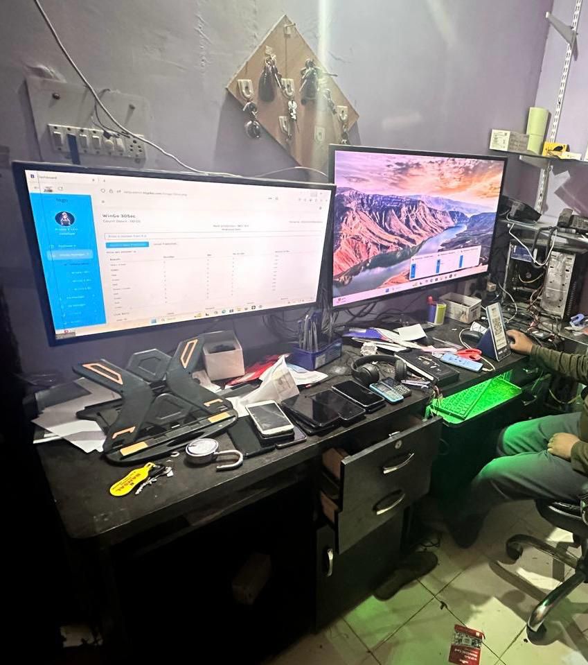 आरोपी के पास से बरामद सामग्री में 1,80,000 रुपये नगद, 3 एल.ई.डी. टी.वी., 16 मोबाइल फोन, 2 लैपटॉप, 2 सी.पी.यू., 2 प्रिंटर, 1 राउटर, 30 से अधिक फर्जी सिम कार्ड, 7 बैंक पासबुक, 2 चेकबुक, 14 ए.टी.एम. कार्ड और 2 रजिस्टर जिसमें लाखों रुपये के ऑनलाइन सट्टे का हिसाब किताब दर्ज था। पुलिस ने यह भी पाया कि आरोपियों द्वारा उपयोग किए गए बैंक खाते में लाखों रुपये का लेन-देन हुआ था। बैंक बबवनदज की जानकारी लेकर अग्रिम कार्यवाही की जा रही है।