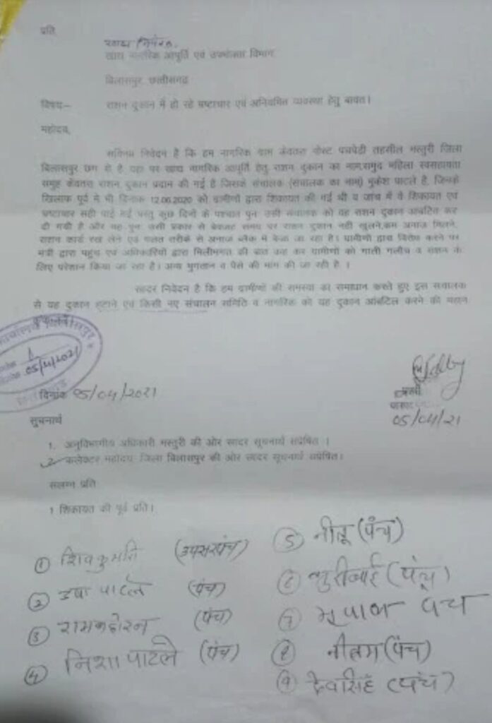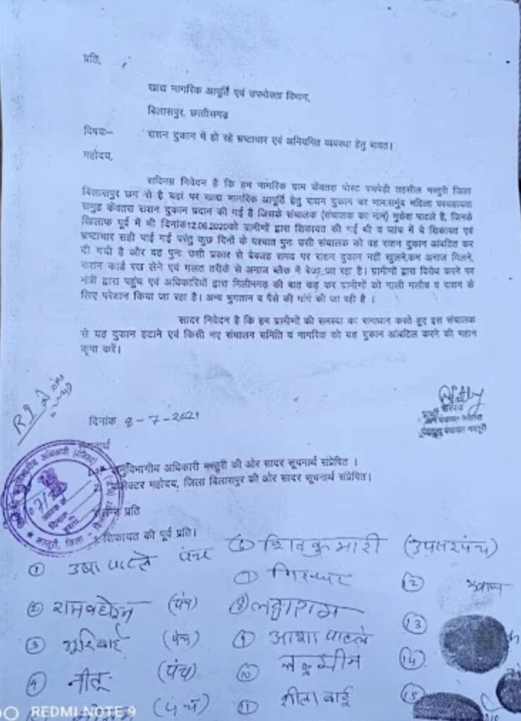 इसी शिकायत को लेकर आज ग्राम पंचायत केवतरा के ग्रामीण खाद्य विभाग पहुंचे.. जहां उन्होंने भ्रष्टाचार कर गरीबों का राशन गबन करने वाले विक्रेता पर कार्रवाई की मांग की.. शासन द्वारा गरीबी रेखा से नीचे जीवन यापन करने वाले लोगों को सस्ती दर पर खाद्यान्न सामग्री उपलब्ध कराने के लिए शासकीय उचित मूल्य दुकान के जरिए खाद्यान्न सामग्री का वितरण किया जाता है!