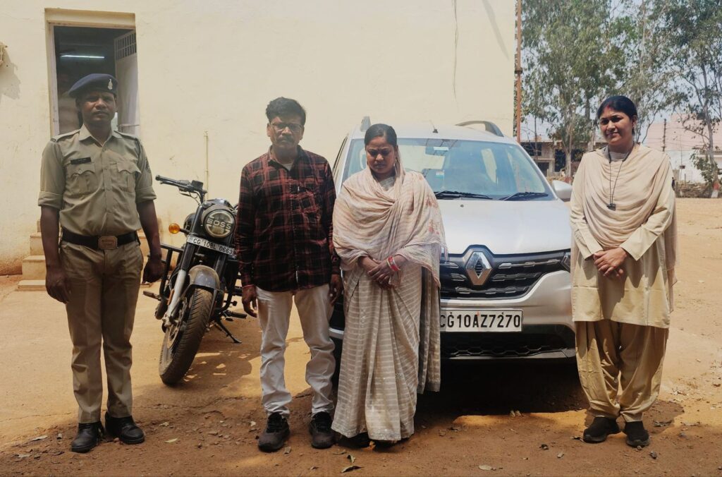मामले का संक्षिप्त विवरण इस प्रकार है! कि प्रार्थिया श्रीमती गायत्री सूर्यवंशी पति संजय सूर्यवंशी उम्र 35 साल निवासी ग्राम पोडी थाना सीपत जिला बिलासपुर ने थाना उपस्थित आकर लिखित आवेदन पर से रिपोर्ट दर्ज कराया कि आरोपी प्रमिल दास मानिकपुरी एवं उसकी पत्नी रंजना मानिकपुरी ग्राम पोडी थाना सीपत के द्वारा गांव में नल उत्खनन, नाली निर्माण, सीसी रोड, नया तालाब उत्खनन, के नाम पर प्रार्थिया और गांव के अन्य महिलाओ से विभिन्न बैंको से लोन निकलवाकर कुल 51 लाख 87 हजार रूपये रकम प्राप्त कर धोखाधडी का अपराध घटित कर सकुनत से फरार हो गये थे। प्रार्थिया के रिपोर्ट पर थाना सीपत में अप क्रमांक 154/2025 धारा 420, 34 भादवि कायम कर विवेचना में लिया गया है। प्रकरण को गंभीरता से लेते हुये वरिष्ठ अधिकारियो के मार्गदर्शन में थाना प्रभारी गोपाल सतपथी के द्वारा तत्काल टीम गठीत कर सायबर सेल की मदद से प्रकरण के फरार आरोपियो की पता साजी कर आरोपियो को सेंद्री बायपास बिलासपुर से दबिस देकर पकडा गया आरोपी गण प्रमिल दास मानिकपुरी एवं उसकी पत्नी रंजना मानिकपुरी से द्वारा पुछताछ पर अपराध स्वीकार करने पर आरोपियों के मेमोरेंडम कथन लिया गया। मेमोरेंडम कथन के आधार पर धोखाधडी के रकम से क्रय किया गया मोटर सायकल बुलेट कीमती 2,50,000 रूपये, कार कीमती करीबन 7,00,000 रूपये, टीवी कीमती करीब 50,000 रूपये, आईफोन कीमती 75,000 रूपये, जूमला कीमती 10,75,000 रूपये की संपत्ती एवं 30 नग एटीएम कार्ड, पेन कार्ड, राशन कार्ड ,मतदाता परिचय पत्र, आधार कार्ड की छायाप्रति, विभिन्न बैंको के पास बुक एवं लोन संबंधी दस्तावेज को जप्त कर आरोपीगणो को विधिवत दिनांक 21.03.2025 को गिरफ्तार कर न्यायिक रिमांड पर भेजा गया है।