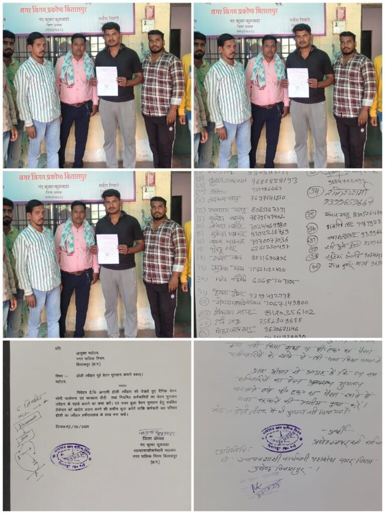 बिलासपुर,,, ठेकेदारों द्वारा चार माह के वेतन का भुगतान न करने और पीएफ की जानकारी न देने से आक्रोशित ठेका कर्मियों ने फिर बुधवार को निगम आयुक्त और महापौर को ज्ञापन सौप वेतन दिलाने की मांग की है!