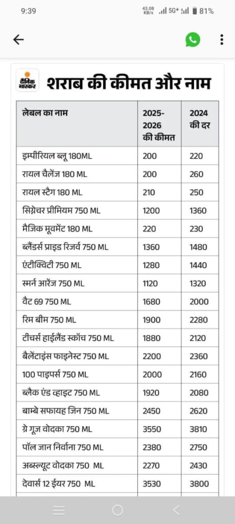 रायपुर,,, छत्तीसगढ़ में सुरा प्रेमियों पर सरकार ने बड़ी मेहरबानी की है! प्रदेश में शराब की कीमतें 300 रुपए तक कम किए गए हैं! यह व्यवस्था 1 अप्रैल से लागू होगी! दरअसल, आबकारी विभाग ने साल 2025-26 के लिए शराब की नई दरें निर्धारित कर दी हैं! नई दरों के मुताबिक एक अप्रैल से प्रदेश में शराब की कीमतों में 4 प्रतिशत की कमी आएगी! इसका मतलब यह हुआ कि 1000 रुपए की बोतल पर 40 रुपए तक कीमत कम हो जाएगी! नए निर्णय के मुताबिक, मैकडॉवेल नंबर वन का पौव्वा प्रदेश में नहीं बिकेगा! आबकारी विभाग ने साल 2025-26 में बिक्री के लिए कई इंटरनेशनल जानी मानी कंपनियों की शराब को भी प्रदेश में मंजूरी दी है! जिन विश्वस्तरीय ब्रांडों को मंजूरी दी गई है! उनमें, परनोड रिकार्ड के 23, यूनाइटेड स्पिरिट के 29, बीम ग्लोबल के 12 और बकार्डी के 8 ब्रांड शामिल हैं!