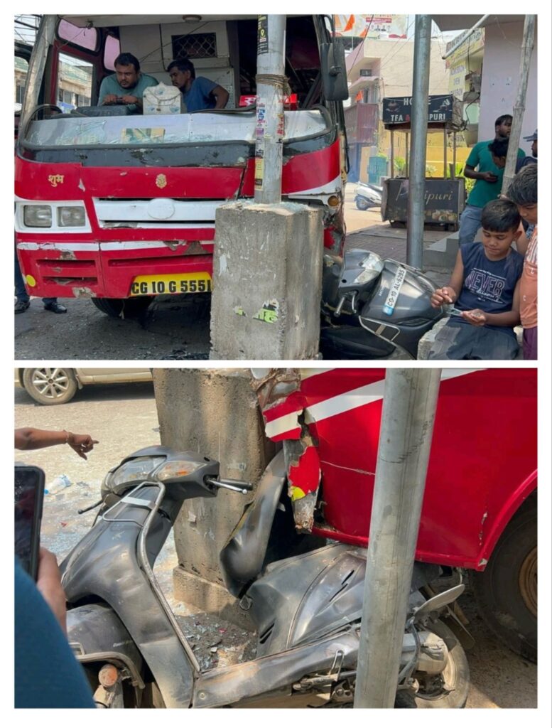 बिलासपुर–छत्तीसगढ़ की न्यायधानी बिलासपुर में गुरुवार को एक बड़ा हादसा टल गया, जब एक ब्रेक फेल बस अचानक अनियंत्रित होकर सड़क किनारे खड़े एक खंभे और वहां खड़ी एक एक्टिवा गाड़ी से जा टकराई। बस की चपेट में आने से एक्टिवा गाड़ी क्षतिग्रस्त हो गई।घटना की भयावहता को देखकर आसपास के लोग सहम गए। हादसे के वक्त सड़क पर थोड़ी भी भीड़ होती, तो कई जिंदगियां खत्म हो सकती थीं। गनीमत रही कि घटना के समय सड़क खाली थी और कोई पैदल यात्री या वाहन चालक उसकी चपेट में नहीं आया।