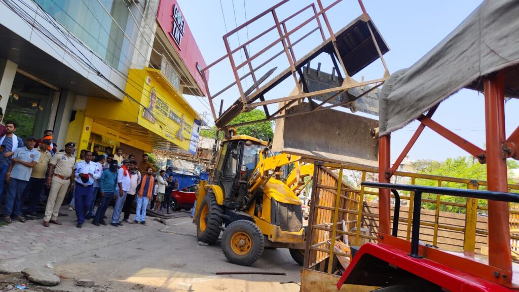 इस दौरान सर्वप्रथम दोपहर को तिफरा ओवर ब्रिज के नीचे ऑटोमोबाइल एजेंसी के द्वारा सामानों को फैलाकर यातायात नियमों को बाधित करते हुए मोटरसाइकिल वाहनों का प्रदर्शनी लगाई गई थी। शहर भ्रमण में निकले वरिष्ठ पुलिस अधीक्षक रजनेश सिंह द्वारा निर्देशित किया गया कि इस तरह यातायात नियमों का उल्लंघन करने वालों पर सख्त से सख्त कार्रवाई की जावे अतः यातायात पुलिस के द्वारा सघन कार्यवाही संचालित करते हुए उक्त ऑटो मोबाइल दुकान/ एजेंसी के द्वारा मुख्य मार्ग में फैला कर रखी गयी सामग्री को नगर निगम को बुलाकर कार्यवाही की गई। आज शायं कालीन समय में बृहस्पति बाजार में कई दुकानें यातायात नियमों का बाधित करते हुए लगाई गई थी जिन पर पूर्व में भी कई बार नियमित रूप से समझाइस एवं हिदायत दिया गया था परंतु फिर भी हिदायत, सुझाव और निर्देशों का पालन न करते हुए दुकान संचालकों और फुटकर व्यापारियों के द्वारा अपने सामान को विक्रय हेतु सड़क पर रखते हुए सड़क को बाधित किया गया था साथ ही खरीददार ग्राहकों के कारण सड़क और भी बाधित हो रही थी। उक्त पतिस्थिति को ध्यान में रखते हुए यातायात पुलिस के द्वारा सर्वप्रथम उन्हें सामग्री को अपने-अपने दुकान के निर्धारित जगहों पर रखने हेतु हिदायत दिया गया नहीं मानने की स्थिति में नगर निगम को बुलाकर उक्त जगह पर यातायात बाधित करने वाले सामग्री को जप्ती की कार्यवाही की गई। साथ ही सड़क मार्ग में टेंट और टीन इत्यादि का सेड लगाकर फुटकर व्यापारियों के द्वारा सड़क मार्ग को बाधित किया जा रहा था उन सभी फुटकर व्यावसायी एवं दुकान संचालकों के सड़कों पर फैली हुई बेतरतीब सामग्री एवं टेंट आदि सामग्रियों को हटाई गई एवं जप्ती की गई। शहर के सभी जगह पर यातायात पुलिस के द्वारा कड़ी नजर रखी जा रही है अतः सभी दुकान संचालकों, फुटकर व्यवसाईयों एवं अन्य विभिन्न प्रयोजन से सड़क मार्ग पर बेतरतीब तरीके से समान फैलाकर अपना व्यवसाय कर रहे हैं उन्हें बार-बार सुझाव, समझाइए, हिदायत एवं निर्देश दिया गया है कि प्रशासन द्वारा निर्धारित क्षेत्र में ही अपने व्यवसाय का सुचारू रूप से संचालन करें मार्ग व्यवस्था को किसी भी स्थिति में बाधित न किया जावे। मार्ग व्यवस्था बाधित करने की स्थिति में यातायात नियमों का उल्लंघन करने पर मोटर यान अधिनियम के तहत कार्यवाही सुनिश्चित की जाएगी। जो व्यवसायी बार-बार समझाइस देने के बावजूद भी नियमों को उल्लंघन करेंगे। उनके विरुद्ध संबंधित विभाग को नियमानुसार कार्यवाही किए जाने हेतु पत्राचार भी भेजना सुनिश्चित किया जाएगा। कई दुकान संचालक जिनके द्वारा मुख्य मार्ग में सामग्री विक्रय करते हुए ग्राहकों की भीड़ लगाई जा रही है उन्हें विभाग की ओर से पार्किंग की व्यवस्था सुनिश्च