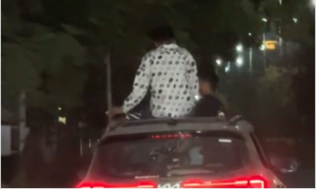बिलासपुर,,, सिविल लाइन थाना क्षेत्र से एक चौंकाने वाला मामला सामने आया है। सोशल मीडिया पर एक युवक का वीडियो तेजी से वायरल हो रहा है, जिसमें वह कार की छत पर बैठकर स्टंट करता और धूम्रपान करता नजर आ रहा है। घटना सत्यम चौक से लेकर अग्रसेन चौक के बीच की बताई जा रही है। वायरल वीडियो में युवक बेखौफ अंदाज में न सिर्फ स्टंट कर रहा है, बल्कि पुलिस प्रशासन को भी खुली चुनौती देता दिखाई दे रहा है।