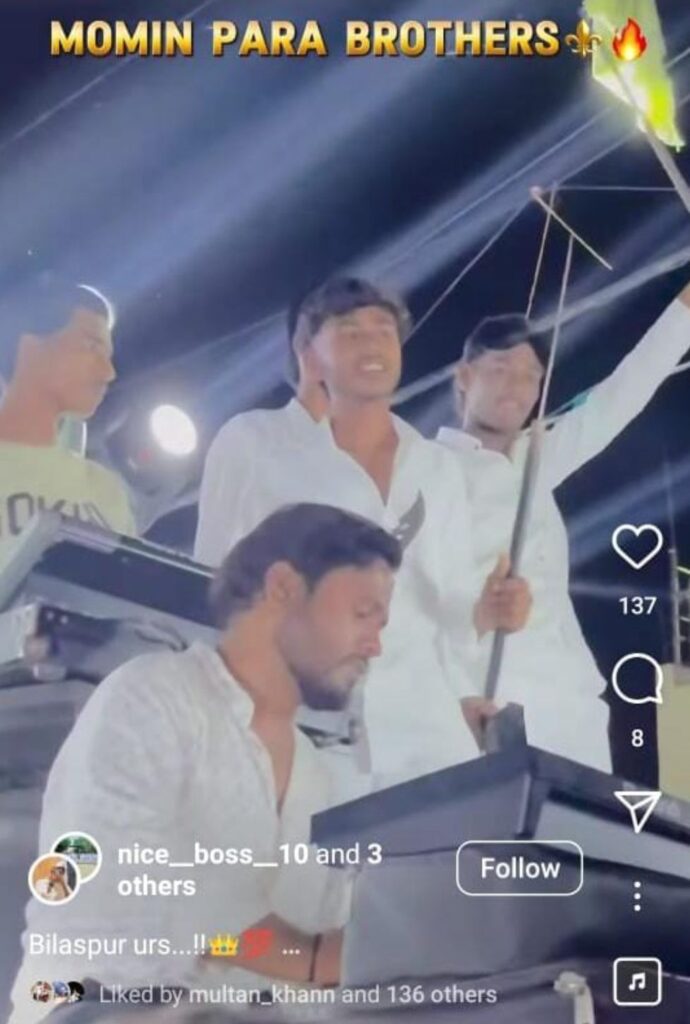 बिलासपुर,,, सोशल मीडिया मे वायरल वीडियो के वायरल होने के बाद से बिलासपुर की सुरक्षा व्यवस्था पर गंभीर सवाल खड़े हो रहे हैं! उर्स की रात का बताया जा रहा है! वीडियो सोशल मीडिया में तेजी से वायरल हो रहा है! इस वीडियो में कुछ नशेड़ी और आदतन बदमाश हथियारों के साथ नजर आ रहे यह वीडियो उर्स की रात का बताया जा रहा है! चुचुहियापारा के लड़कों द्वारा पुलिस लाइन के उर्स में चादर ले जाते समय पुलिस की तगड़ी सुरक्षा और जगह जगह पुलिस जवानो और अफसरों की तैनाती के बाद भी तलवार और चाकू लहारते रहे! सबसे बड़ी हैरानी की बात यह है! की मिली जानकारी के अनुसार सिरगिट्टी के चुचुहियापारा से निकला यह जुलूस बिलासपुर के सिविल लाइन मे खत्म हुआ!