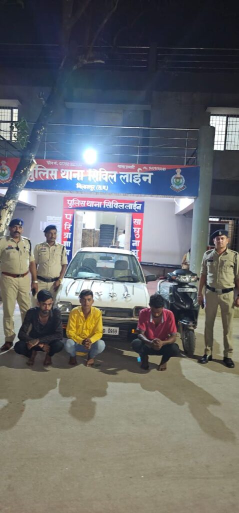 बिलासपुर,,, हरप्रीत सिंह पिता रोशन सिंह उम्र 19 साल निवासी कस्तुरबा नगर थाना सिविल लाईन का दिनॉक 16-04-2025 को रिपोर्ट दर्ज कराया कि दिनॉक 15-04-2025 को किसी अज्ञात चोर के द्वारा रात्रि में जतिया तालाब गेट के सामने स्थित वाल्मिकी गुरूद्वारा कस्तुरबा नगर के चैनल गेट व दरवाजा का ताला तोडकर दान पेटी, 03 नग बडी कृपाण,01 नग छोटी कृपाण तथा दान पेटी में रखे दान की रकम 22000रू को चोरी कर ले गया गया है जिसकी सूचना वरिष्ठ अधिकारीयों को दिया गया जिसके द्वारा दिये गये मार्गदर्शन एवं निर्देशन में प्रकरण में चोरी गई मशरूका एवं अज्ञात आरोपी की पतासाजी हेतु गुरूद्वारा के आसपास लगे सीसीटीव्ही कैमरा खंगाला गया एवं मुख्बीर तैनात कर लागातार सीसीटीव्ही कैमरे में कैद संदेहियो के आधार पर आरोपी आशीष लाल को पकडकर कडाई से पुछताछ किया गया जो अपने दो अन्य साथी मानस उर्फ सोनू, अविनाश उर्फ बन्टी रात्रे से मिलकर योजना बना कर रात्रि में चोरी करना बताया जो आरोपीगणों को विधिवत दिनॉक 22-05-2025 को गिरफतार कर माननीय न्यायालय में पेश किया जावेगा।