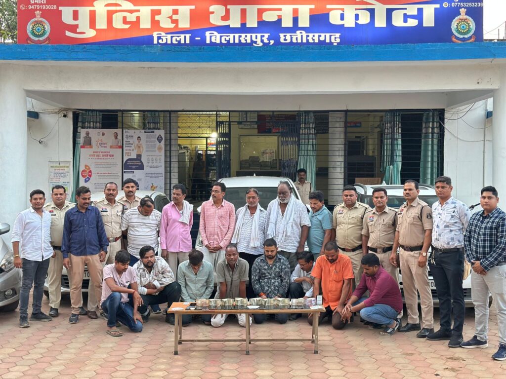 बिलासपुर के वरिष्ठ पुलिस अधीक्षक रजनेश सिंह (भा.पु.से.) ने जिले में सट्टा और जुआ के खिलाफ अभियान चलाने के निर्देश दिए थे! इसी क्रम में अतिरिक्त पुलिस अधीक्षक (ग्रामीण) श्रीमती अर्चना झा एवं एस.डी.ओ.पी. कोटा श्रीमती नुपुर उपाध्याय के दिशा-निर्देशन में थाना प्रभारी कोटा तोप सिंह नवरंग की टीम को जुआ पर नियंत्रण हेतु सतत निगरानी और मुखबिर तैनात करने के निर्देश दिए गए थे!