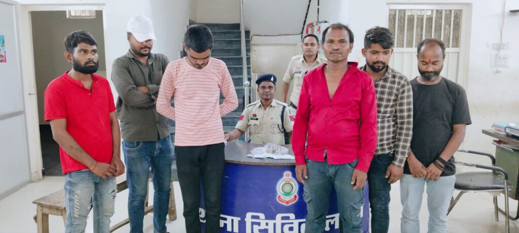 बिलासपुर,,,,जिले में अवैध जुआ-सट्टा के खिलाफ चलाए जा रहे विशेष अभियान के तहत सिविल लाइन पुलिस ने एक बड़ी कार्रवाई करते हुए 6 जुआड़ियों को रंगे हाथों पकड़ने में सफलता हासिल की है! ये सभी आरोपी ईमलीपारा मेन रोड किनारे खुलेआम रूपयों की हार-जीत के दांव पर कट पत्ती ताश का जुआ खेल रहे थे!
