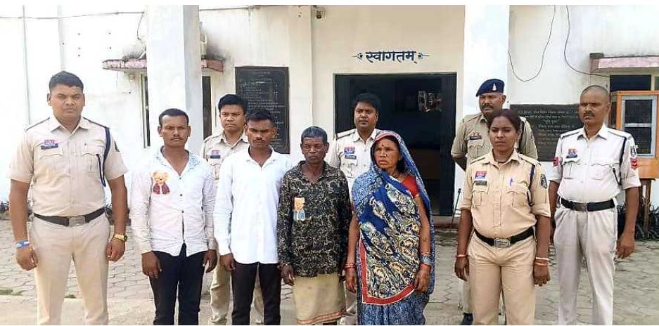 बिलासपुर,,,, हिर्रि पुलिस ने हत्या के आरोप में भाई, भतीजा, बहु और एक नाबालिग समेत पांच लोगों को गिरफ्तार किया है! जमीन बंटवारा को लेकर हुए विवाद में छोटे भाई ने अपने पुत्र, पत्नी, नाती के साथ मिलकर बड़े भाई की लाठी, डंडा और रॉड से हमला कर हत्या कर दिया था! मामले का संक्षिप्त विवरण इस प्रकार है! कि प्रार्थीया थाना उपस्थित आकर रिपोर्ट दर्ज करायी कि 08.06.2025 को करीबन 08:30 बजे मेरे ससुर खाना खा कर घर के बाहर पैठा में बैठे थे। मैं बर्तन साफ कर रही थी एवं मेरे पति काम से वापस आकर हाथ पैर धो रहे थे। तभी मेरे काका ससुर लेखुराम, काकी सास महेशिया, देवर मिलाप, ईश्वर और 01 नाबालिग सभी लोग एक राय होकर, मिलाप और ईश्वर अपने हाथ में रखे लाठी से हत्या करने के नियत से मेरे ससुर को मारने लगे। तभी देवर 01 नाबालिग सब्बल लेकर आया और हत्या करने की नियत से मेरे ससुर के गुप्तांग के पास सब्बल से मार दिया जिससे वहां से खुन निकलने लगा। मैं एवं मेरे पति तथा सास बीच बचाव करने लगे। मारपीट के बीच मेरे ससुर नाली में गिर गये तब मेरे काका ससुर, काकी सास और देवर मिलाप, ईश्वर, 01 नाबालिग वहां से भाग गये। इसके बाद हमलोग 108 एम्बुलेंश से अपने ससुर फेकुराम को बिल्हा अस्पताल ले गये जहां डॉक्टर ने जांच करने के बाद बताया की मेरे ससुर की मृत्यु हो गई है। लेखुराम, महेशिया, और उसके बेटे मिलाप, ईश्वर एवं 01 नाबालिग एक राय होकर लाठी सब्बल से मारपीट कर हत्या किये है। इसके बाद आरोपियों के खिलाफ अपराध दर्ज कर मामले को विवेचना में लिया गया। मामले की गंभीरता को देखते हुये वरिष्ठ अधिकारियों को अवगत कराया गया। वरिष्ठ पुलिस अधीक्षक रजनेश सिंह के निर्देश पर तथा श्रीमान अतिरिक्त पुलिस अधीक्षक ग्रामीण अनुज कुमार एवं नगर पुलिस अधीक्षक चकरभाठा डी.आर. टण्डन के मार्ग दर्शन पर टीम गठित कर आरोपियो की तलाश शुरू ही और सभी को उनके घर से हिरासत में लिया गया। पुलिस ने खरकेना निवासी 1. लेखुराम ध्रुव पिता स्व. मैतुराम ध्रुव उम्र 55 साल, 2. महेशिया बाई ध्रुव पति लेखुराम ध्रुव उम्र 55 साल, 3. मिलाप ध्रुव पिता लेखराम ध्रुव उम्र 35 साल, 4. ईश्वर ध्रुव पिता लेखुराम ध्रुव उम्र 23 साल, एवं 01 विधि से संघर्षरत बालक को हिरासत में लेकर पूछताछ तो अपराध करना स्वीकार कर लिया। आरोपियों का बयान लेकर घटना में प्रयुक्त लाठी, डण्डा और सब्बल को जप्त कर कब्जे पुलिस लिया है। गिरफ्तार आरोपियों को ज्युडिशियल रिमाण्ड पर भेजा गया है।आरोपीगण :-1. लेखुराम ध्रुव पिता स्व. मैतुराम ध्रुव उम्र 55 साल, 2. महेशिया बाई ध्रुव पति लेखुराम ध्रुव उम्र 55 साल, 3. मिलाप ध्रुव पिता लेखराम ध्रुव उम्र 35 साल, 4. ईश्वर ध्रुव पिता लेखराम ध्रुव उम्र 23 साल, 5. 01 विधि से संघर्षरत बालक साकिनान खरकेना थाना हिरीं जिला बिलासपुर छ.ग.