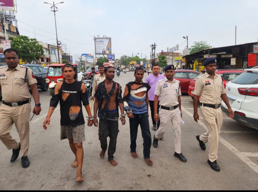 प्रार्थी संतोष कुमार राय ने थाना तेलीबांधा में रिपोर्ट दर्ज कराया कि वह मजदूरी का काम करता है तथा व्ही आई पी चौक स्थित ऐरीना होटल के बाजू में बन रहे निर्माणाधीन मकान में विगत एक माह से मजदूरी कर रहा है। प्रार्थी दिनांक 04.06.2025 को रात्रि 08ः00 बजे अपने साथी सलमान कुमार डहरिया के साथ व्ही.आई.पी. चौक के थोडा आगे जा रहा था। उसी समय रास्ते में कुछ अज्ञात लडके मिले जिसमें से एक लडका प्रार्थी को धक्का दिया तब वह क्यों धक्का दे रहे हो बोला तो लड़के प्रार्थी को अश्लील गाली गलौज कर जान से मारने की धमकी देते हुये अपने पास रखंे चाकू से उसके दाहिने पैर के जांघ में पीछे से मारकर गंभीर चोट पहुंचाकर भाग गये, कि प्रार्थी की रिपोर्ट पर अज्ञात आरोपियों के विरूद्ध थाना तेलीबांधा में अपराध क्रमंाक 338/25 धारा 296, 351(2), 118(1), 3(5) बी.एन.एस. 25, 27 आर्म्स एक्ट का अपराध पंजीबद्ध किया गया। वरिष्ठ अधिकारियों के निर्देशन में एण्टी क्राईम एण्ड साईबर यूनिट तथा थाना तेलीबांधा पुलिस की संुयक्त टीम द्वारा घटना के संबंध में प्रार्थी, उसके साथी सहित आसपास के लोगांे से विस्तृत पूछताछ कर अज्ञात आरोपियों की पतासाजी करना प्रारंभ किया गया। टीम के सदस्यों द्वारा घटना स्थल व उसके आसपास लगे सी.सी.टी.व्ही. कैमरों के फुटेजों का अवलोकन करने के साथ ही पुराने अपराधियों के संबंध में भी जानकारी एकत्र किया गया। प्रकरण में मुखबीर लगाने के साथ ही अन्य माध्यमों से अज्ञात आरोपियों की पतासाजी कर चिन्हांकित करने के प्रयास किये जा रहे थे। इसी दौरान अज्ञात आरोपियों की गिरफ्तारी में लगी टीम के सदस्यों को घटना मंे संलिप्त आरोपियों के संबंध में महत्वपूर्ण जानकारी प्राप्त हुई तथा प्रकरण में आरोपी शुभम करवा, राहुल मिश्रा, सूरज जाल सहित विधि के साथ संघर्षरत 01 बालक को पकड़कर घटना के संबंध में पूछताछ करने पर आरोपियों/अपचारी द्वारा उक्त घटना को अंजाम देना स्वीकार किया गया। जिस पर चारों को गिरफ्तार कर उनके कब्जे से घटना में प्रयुक्त बटनदार चाकू जप्त कर चारों के विरूद्ध कार्यवाही किया गया।