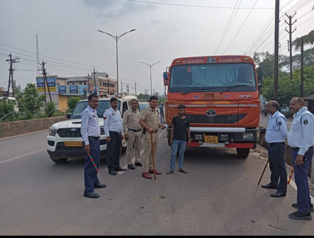 रायपुर,,,, शहर में यातायात व्यवस्था को सुचारू रखने और सड़क दुर्घटनाओं की आशंका को कम करने के उद्देश्य से रायपुर पुलिस ने एक सख्त अभियान चलाया! पुलिस उप महानिरीक्षक एवं वरिष्ठ पुलिस अधीक्षक रायपुर डॉ. लाल उमेद सिंह के निर्देश पर रिंग रोड नंबर 2 पर नो पार्किंग क्षेत्र में खड़े 150 से अधिक भारी मालवाहक वाहनों के विरुद्ध चालानी कार्रवाई की गई!