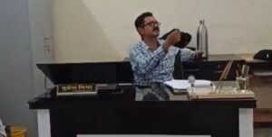 बिलासपुर,,,, संभागीय शिक्षा कार्यालय में पदस्थ सहायक संचालक मुकेश मिश्रा एक वीडियो के वायरल होने के बाद विवादों में घिर गए हैं! आरोप है! कि वे ड्यूटी के दौरान नशे की हालत में दिखाई दिए और शिक्षकों के प्रतिनिधि मंडल से अभद्र व्यवहार किया! घटना को लेकर सोशल मीडिया पर वीडियो वायरल हो रहा है! जिसमें मिश्रा का असंतुलित व्यवहार और पत्रकारों से संवाद करते हुए कुछ आपत्तिजनक टिप्पणियाँ भी सामने आई हैं!