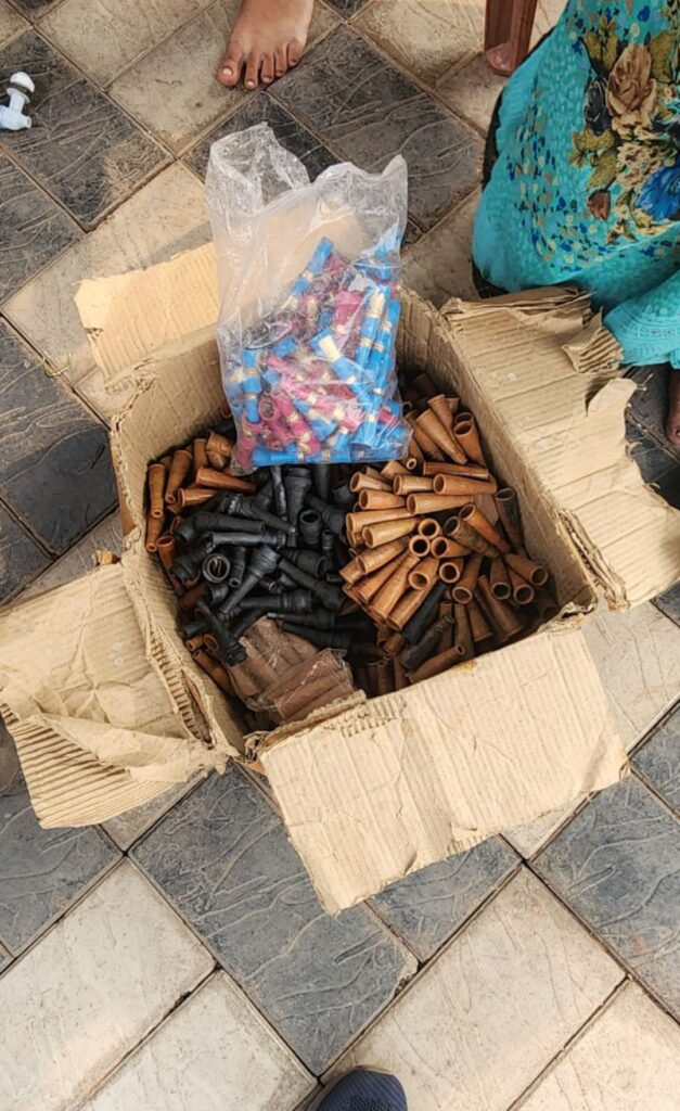 रायपुर,,, खमतराई थाना क्षेत्र में पुलिस ने पान ठेले की आड़ में गांजा बेच रहे पांडो साहू को 2 किलो गांजा, 3 चाकू और एक अस्तुरा के साथ गिरफ्तार किया! पान ठेला सील कर NDPS और आर्म्स एक्ट के तहत मामला दर्ज किया गया! 8 कुम्हारों से 1700 चिलम भी नष्ट किए!