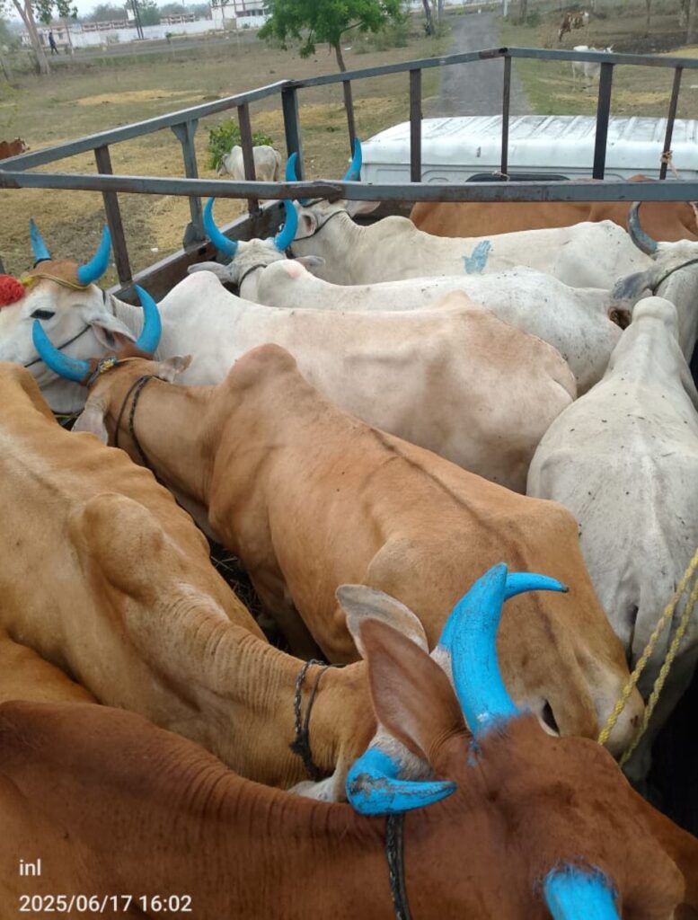 मुंगेली,,, पुलिस अधीक्षक भोजराम पटेल ने असामाजिक तत्वों एवं मादक पदार्थ बिक्री व तस्करी करने वालों के विरूद्ध “ऑपरेशन बाज” अभियान चलायी जाकर समस्त थाना/चौकी प्रभारियों को कड़ी कार्यवाही करने निर्देश दिया गया है। उक्त निर्देश के परिपालन में अतिरिक्त पुलिस अधीक्षक मुंगेली सुश्री नवनीत कौर छाबड़ा एवं उप पुलिस अधीक्षक लालपुर श्री एस. आर. धृतलहरे से कुशल मार्गदर्शन प्राप्त कर थाना लालपुर पुलिस द्वारा ग्रामीणों की सूचना पर दिनांक 14.06.2025 को रात्रि लगभग 11.30 बजे ग्राम हरनाचाका रोड मे चार व्यक्ति के द्वारा 16 नग बैलो को क्रुरता पूर्वक पैदल हांकते हुये कत्लखाना ले जा रहे है जिसे रोककर पुछताछ करने पर अन्य लोग भाग गये है