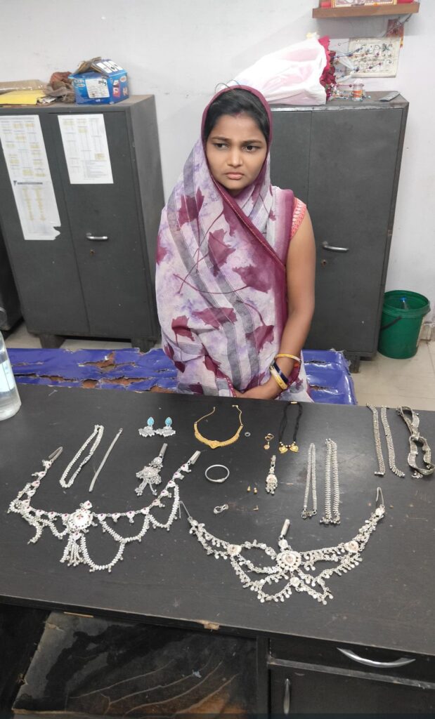 विवेचना के दौरान घटना स्थल के आस पास लगे सीसीटीव्ही फुटेज को देखने पर एक संदिग्ध विधि से संघर्षरत बालक को पकड़कर घटना के संबंध में कड़ाई से पूछताछ करने पर अपने साथी सौरभ, पुष्पेन्द्र के साथ मिलकर उरकुरा, बिरगांव, सरोरा, दुर्गा नगर में सोने चांदी के जेवरात व टीवी, लैपटाप व मोटर सायकल चोरी करना बताये, चोरी में मिले सोने चांदी के जेवरात को खुशबू देवी साहू निवासी रावामांठा के पास ब्रिकी किये है तथा पैसे को खाने पीने में खर्च कर दिये बताये, खुशबू साहू पति कुलेश्वर पाण्डेय उम्र 28 साल साकिन खेल मैदान के पास रावाभांठा, थाना खमतराई जिला रायपुर को पकड़कर पुछताछ करने पर विधि से संघर्षरत् बालक, सौरभ, पुष्पेन्द्र चोरी के सोने चांदी के जेवरात लाकर मेरे पास बेचना बताने पर आरोपिया खुशबू देवी साहू के कब्जे से सोने चांदी के जेवरात, सोने जैसे हार, चांदी की पायल, चांदी की बिछिया, हाथ करधन, सोने के फुल्ली, चांदी का कड़ा, चांदी की करधन, मंगलसूत्र एवं विधि से संघर्षरत् बालक से 02 नग लैपटाप, 02 नग मोटर सायकल, 01 नग एलईडी टीव्ही कुल जुमला किमती 5,00,000रू को जप्त कर विधि से संघर्षरत बालक को बाल न्यायालय माना एवं महिला आरोपिया को रायपुर न्यायालय में पेश किया, प्रकरण के 02 अन्य फरार आरोपी सौरम, पुष्पेन्द्र की पता तलाश जारी है।