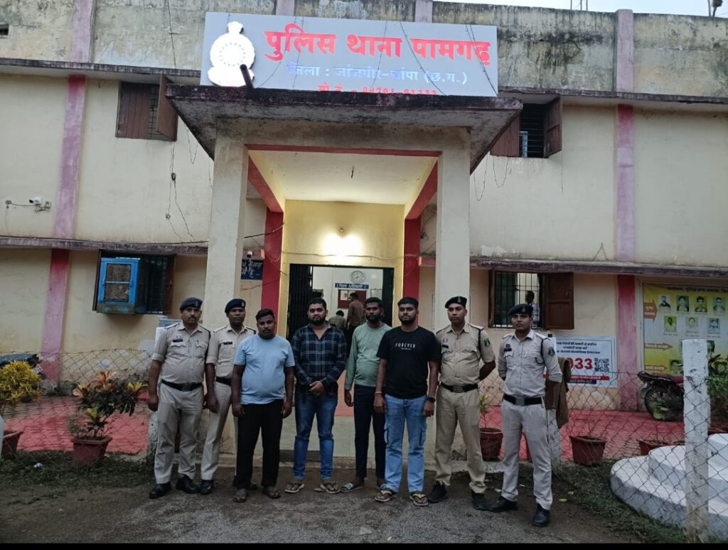 दोनो पक्षों में हुए मारपीट के मामले में बलवा, हत्या का प्रयास का मामला थाना पामगढ़ पुलिस द्वारा अपराध पंजीबद्व कर विवेचना में लिया गया है। प्रकरण की गंभीरता को देखते हुए अतिरिक्त पुलिस अधीक्षक श्री उमेश कुमार कश्यप के कुशल मार्ग दर्शन में थाना पामगढ़ पुलिस द्वारा एक पक्ष के आरोपी दिग्विजय सिह राठौर, चन्द्रषेखर, सूरज यादव, देवेन्द्र राठौर एवं दुसरे पक्ष के आरोपी राधेश्याम राठौर, अमन राठौर को गिरफ्तार किया जा चुका है। मामले की विवेचना जारी है।