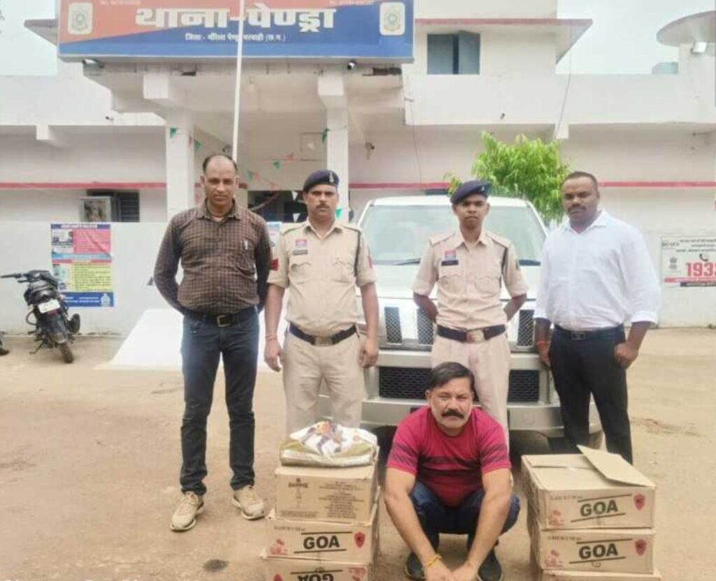 कोटमी चौकी क्षेत्र अंतर्गत होटल पैराडाइज में अवैध अंग्रेजी शराब के भंडारण और बिक्री की सूचना मिलने पर जिला पुलिस ने बड़ी कार्रवाई की है! पुलिस अधीक्षक सुरजन राम भगत के निर्देश एवं अतिरिक्त पुलिस अधीक्षक ओम चंदेल के मार्गदर्शन में साइबर सेल जीपीएम और चौकी कोटमी की संयुक्त टीम ने योजनाबद्ध ढंग से दबिश दी! पुलिस ने इस कार्रवाई में 4 लाख रुपए कीमत की अंग्रेजी शराब जप्त की है, जिसे मध्य प्रदेश से तस्करी करके लाई गई थी।पुलिस ने मुखबिर की सूचना पर होटल परिसर और उससे लगे निर्माणाधीन बाड़े में छापा मारा जहां होटल संचालक राजेश शर्मा पिता सुखदेव प्रसाद शर्मा, उम्र 47 वर्ष, निवासी अकोला चौकी कोटमी को उसकी महिंद्रा टीयूवी (क्रमांक JH 01 BU 1088) में बड़ी मात्रा में अंग्रेजी शराब के साथ पकड़ा गया।पुलिस ने मौके पर अंग्रेजी शराब गोवा ब्रांड के 227 नग (180ml), बैगपाइपर के 48 नग (180ml) एवं ब्ल्यू चिप्स के 17 बॉटल जप्त किए है। कुल मिलाकर लगभग 52.560 लीटर शराब और संबंधित वाहन सहित ₹3,96,200/- मूल्य की संपत्ति जब्त की गई। जप्त शराब को मध्य प्रदेश से तस्करी करके लाई गई थी।आरोपी के विरुद्ध मध्यप्रदेश राज्य की शराब का अवैध परिवहन एवं होटल/ढाबा परिसर से बिक्री करने के आरोप में आबकारी एक्ट की धाराओं के तहत विधिवत कार्यवाही की गई है।इस कार्रवाई में साइबर सेल प्रभारी उप निरीक्षक सुरेश ध्रुव एवं कोटमी चौकी प्रभारी उप निरीक्षक अजय वारे के नेतृत्व में पुलिस टीम में प्रधान आरक्षक चौपाल कश्यप, आरक्षक राजेश शर्मा, हर्ष गहरवार, महेंद्र परस्ते, ऋषि साहू सहित थाना स्तर से उप निरीक्षक रणछोड़ दास सेंगर, प्रधान आरक्षक पवन राठौड़ एवं अन्य स्टाफ शामिल रहे।