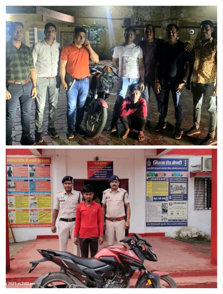 बैंक सेंधमारी की घटना को गंभीरता से लेते हुए पुलिस अधीक्षक जांजगीर चांपा श्री विजय कुमार पाण्डेय (IPS) के निर्देशन एवं अतिरिक्त पुलिस अधीक्षक श्री उमेश कुमार कश्यप के कुशल मार्गदर्शन में सायबर टीम द्वारा बैंक में लगे सीसीटीवी कैमरा का बारीकी से अवलोकन पर अज्ञात दो आरोपी घटना करते दिखे तकनीकी जानकारी के आधार पर आरोपियों की पहचान कर CSP जांजगीर श्रीमति कविता ठाकुर के नेतृत्व में कोरबा टाउन से घेराबंदी कर पकड़ा गया, जिसको घटना के संबंध में पूछताछ करने पर आरोपी विजय यादव द्वारा अपने साथी एक विधि से संघर्षरत बालक के साथ दिनांक 13.06.25 के रात्रि में मोटर सायकल से चोरी करने के नियत से जांजगीर आना और बैंक के शटर के ताला को तोड़कर बैंक अंदर जाकर चोरी के लिये रकम ढुढना जो रकम नहीं मिलने से वापस घर कोरबा आ जाना जुर्म स्वीकार किए जाने से घटना में प्रयुक्त मो.सा. को बरामद किया जाकर आरोपी को विधिवत गिरफ्तार कर न्यायिक रिमांड पर भेजा गया है, एवं प्रकरण में शामिल विधि विरुद्ध संघर्षरत बालक को किशोर न्यायालय पेश किया गया है।