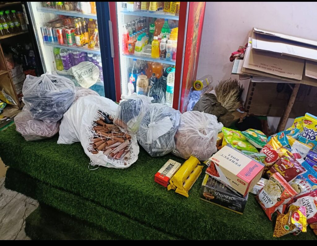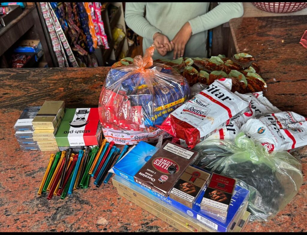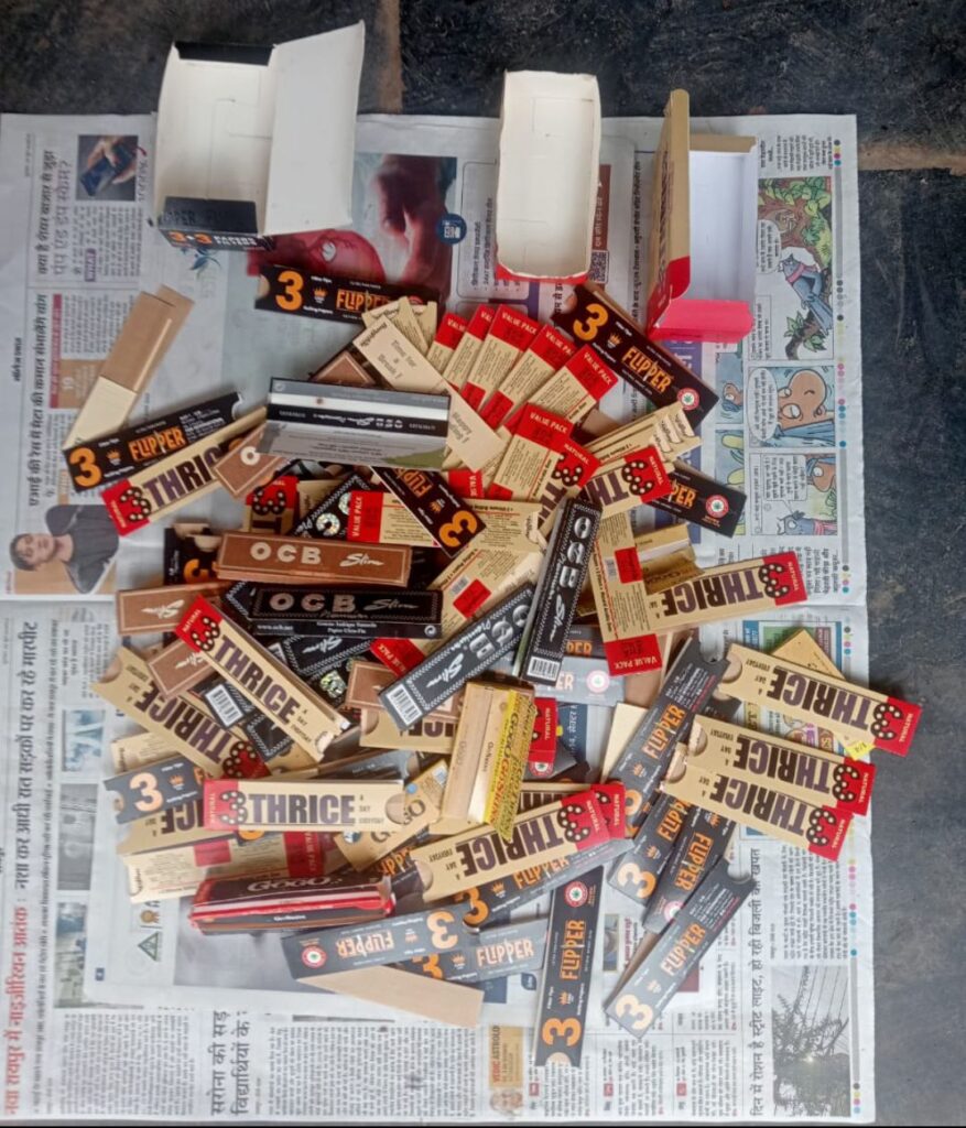 सिगार, 200 पाउच प्रतिबंधित गुटखा जप्त किया गया तथा गोगो पेपर, रोल पेपर, प्रतिबंधित गुटखा को समक्ष में मौके पर संचालकों से जलवाकर नष्ट कराने के साथ ही चिलम को भी नष्ट कराया गया। उक्त सामग्रियों की बिक्री करते पाये जाने पर ऐसे ठेला, गुमटी एवं दुकान को बंद कराने के साथ ही लगभग 11 व्यक्तियों के विरूद्ध संबंधित थानों में वैधानिक कार्यवाही की जा रहीें है।