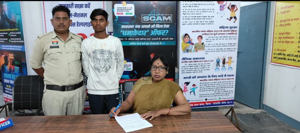 उपरोक्त कार्यवाही मे निरीक्षक जय प्रकाश गुप्ता थाना प्रभारी चांपा, उनि. सिलमानी टोप्पो, सउनि ज्ञान प्रकाश खाखा महिला प्रधान आरक्षक पुष्पलता साहू, आर. प्रहलाद दिनकर, महिला आरक्षक संगीता लहरें एवं थाना स्टाफ का सराहनीय योगदान रहा।
