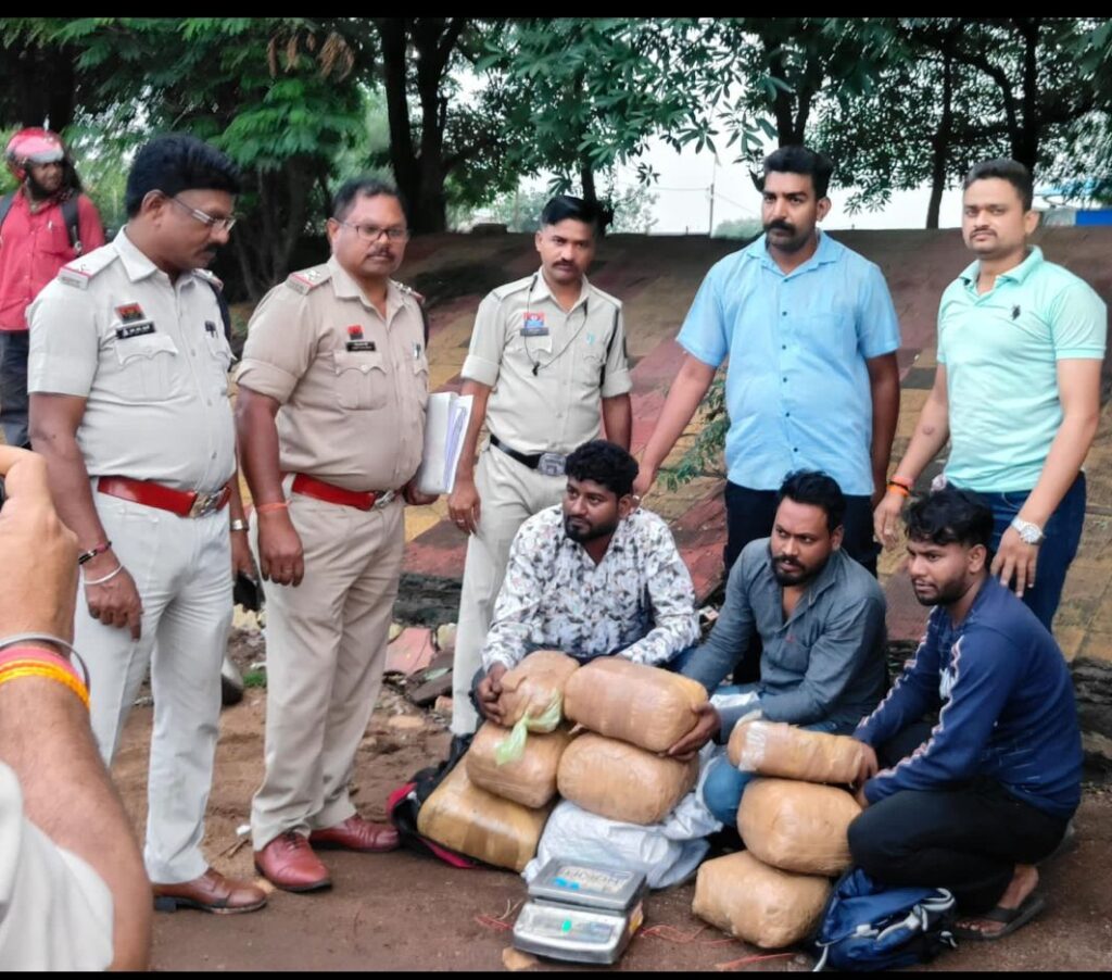 इसी तारतम्य में दिनांक 03.07.25 को थाना खमतराई पुलिस टीम को मुखबीर से सूचना प्राप्त हुई कि थाना खमतराई क्षेत्रान्तर्गत स्थित व्यास तालाब बीरगांव, रायपुर के पास 03 व्यक्ति अपने पास मादक पदार्थ गांजा रखा है जिसे तस्करी करने की फिराक में है। जिस पर अतिरिक्त पुलिस शहर, नगर पुलिस अधीक्षक उरला तथा थाना प्रभारी खमतराई को आरोपियों को मादक पदार्थ गांजा के साथ रंगे हाथ पकड़ने निर्देशित किया गया। जिसपर थाना खमतराई पुलिस टीम द्वारा मुखबीर द्वारा बताये हुलिये के व्यक्तियों की पतासाजी करते हुये संदेहियों को चिन्हांकित कर पकड़ा गया। संदेहियों के पास रखे 02 काले रंग के पिठ्दू बैंग एवं प्लास्टिक की बोरी को चेक करने पर उसके अंदर मादक पदार्थ गांजा रखा मिला। आरोपियों से पूछताछ करने पर अपना-अपना नाम कमशः 01. संतोष कुमार निवासी उमरपोर्ट थाना नवरंगपुर (उडिसा), 02. महेश श्याम राव कामडे निवासी कवडगांव थाना आस्टी जिला अहिल्या नगर (महाराष्ट्र), 03. सुफियान खान निवासी बथाना पोष्ट अमनौर थाना मडौरा जिला छपरा (बिहार) हाल बंजारी नगर मदरसा के पास रावांभाठा का होना बताये। उक्त आरोपियो से उनके पास रखे मादक पदार्थ गांजा के संबधं में दस्तावेज प्रस्तुत करने कहा गया किन्तु आरोपियो द्वारा कोई भी वैद्य दस्तावेज प्रस्तुत नहीं किया गया जिस पर आरोपी 01. संतोष कुमार से कुल तीन पैकेट में रखे कुल 10.050 किलो गाम गांजा एवं 01 नग मोबाईल फोन 02. महेश श्याम राय कामड़े से तीन पैकेट में 09.120 किलो गाम गांजा एंव 01 नग मोबाईल फोन 03. सुफियान खान से तीन पैकेट में 06.320 किलो गाम गांजा एवं 01 नग मोबाईल फोल कुल जुमला किमती 2,76,500रू जप्त कर आरोपियो को गिरफ्तार कर आरोपियो के विरूद्ध अपराध कमांक 724/25 धारा 20 (बी) एनडीपीएस एक्ट पंजीबद्ध कर आरोपियो के विधिवत् कार्यवाही किया गया।