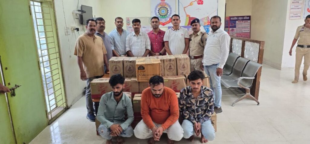 पुलिस महानिरीक्षक अमरेश मिश्रा, रापयुर रेंज रायपुर तथा उमनि एवं वरिष्ठ पुलिस अधीक्षक महोदय डॉ. लाल उमेद सिंह द्वारा शासन के मंशानुसार समस्त पुलिस राजपत्रित अधिकारियों, थाना प्रभारियों सहित प्रभारी एण्टी क्राईम एवं साईबर यूनिट को अन्य राज्यों से आने वाले शराब की तस्करी रोकने के साथ ही अवैध रूप से शराब की खरीदी-बिक्री करने वाले लोगों के संबंध में पतासाजी कर कार्यवाही करने निर्देशित किया गया है। जिसके तारतम्य में रायपुर पुलिस के समस्त पुलिस राजपत्रित अधिकारियों एवं प्रभारी ए.सी.सी.यू. सहित थाना प्रभारियों द्वारा इस संबंध में सूचना संकलन कर मुखबीर लगाने के साथ ही अन्य माध्यमों से भी जानकारी एकत्रित किए जा रहे है।इसी क्रम में दिनांक 06.07.2025 एवं 07.07.2025 के दरम्यानी रात्रि एण्टी क्राईम एण्ड साईबर यूनिट की टीम को सूचना प्राप्त हुई कि कुछ व्यक्ति 02 चारपहिया वाहन में मध्यप्रदेश से चंदनडीह होते हुए रायपुर शराब लेकर आ रहे है। जिस पर अतिरिक्त पुलिस अधीक्षक पश्चिम श्री डी.आर. पोर्ते, अतिरिक्त पुलिस अधीक्षक क्राईम श्री संदीप मित्तल, नगर पुलिस अधीक्षक आजाद चौक श्री अमन झा(भा.पु.से.) द्वारा प्रभारी एण्टी क्राईम एण्ड साईबर यूनिट तथा थाना प्रभारी आमानाका को सूचना की तस्दीक कर आरोपियों को शराब के साथ रंगेहाथ पकड़ने हेतु निर्देशित किया गया। जिस पर वरिष्ठ अधिकारियों के निर्देशन में एण्टी क्राईम एण्ड साईबर यूनिट तथा थाना आमानाका पुलिस की संयुक्त टीम द्वारा उक्त स्थान जाकर चंदनडीह पास नाकाबंदी कर चेकिंग प्वाईंट लगाया गया। इसी दौरान टीम के सदस्यों द्वारा मुखबीर द्वारा बताये वाहन को आता देखा गया, टीम के द्वारा पाया गया कि उक्त वाहन को 01 अन्य वाहन पायलेट कर ले जा रही है। जिस पर टीम के सदस्यों द्वारा दोनो चारपहिया वाहनों का पीछा कर चंदनडीह ओव्हरब्रीज के ऊपर पकड़ा गया। वाहनों में 03 व्यक्ति सवार थे जिन्होने पूछताछ में अपना नाम भावेश पाण्डेय, सुजीत तिवारी तथा दीपेश भंसाली निवासी रायपुर का होना बताया। टीम के सदस्यों द्वारा वाहनों की तलाशी लेने पर दोनों वाहनों में शराब रखा होना पाया गया। शराब रखने एवं परिवहन करने के संबंध में वैध दस्तावेज की मांग करने पर उसके द्वारा किसी प्रकार का कोई दस्तावेज प्रस्तुत न कर टीम के सदस्यों को लगातार गुमराह करने का प्रयास किया जा रहा था। जिस पर टीम के सदस्यों द्वारा तीनों आरोपियों को गिरफ्तार कर उनके *कब्जे से अवैध रूप से रखें 20 पेटी (240) बौतल अंग्रेजी शराब तथा घटना में प्रयुक्त क्रेटा वाहन सीजी/04/एनएल/6526 तथा स्वीफ्ट डिजायर सीजी/04/पीटी/7788 तथा 05 नग मोबाईल फोन जुमला कीमती लगभग 17,00,000/- रूपये जप्त* कर आरोपियों के विरूद्ध थाना आमानाका में अपराध क्रमांक 219/25 धारा 34(2), 36 आबकारी एक्