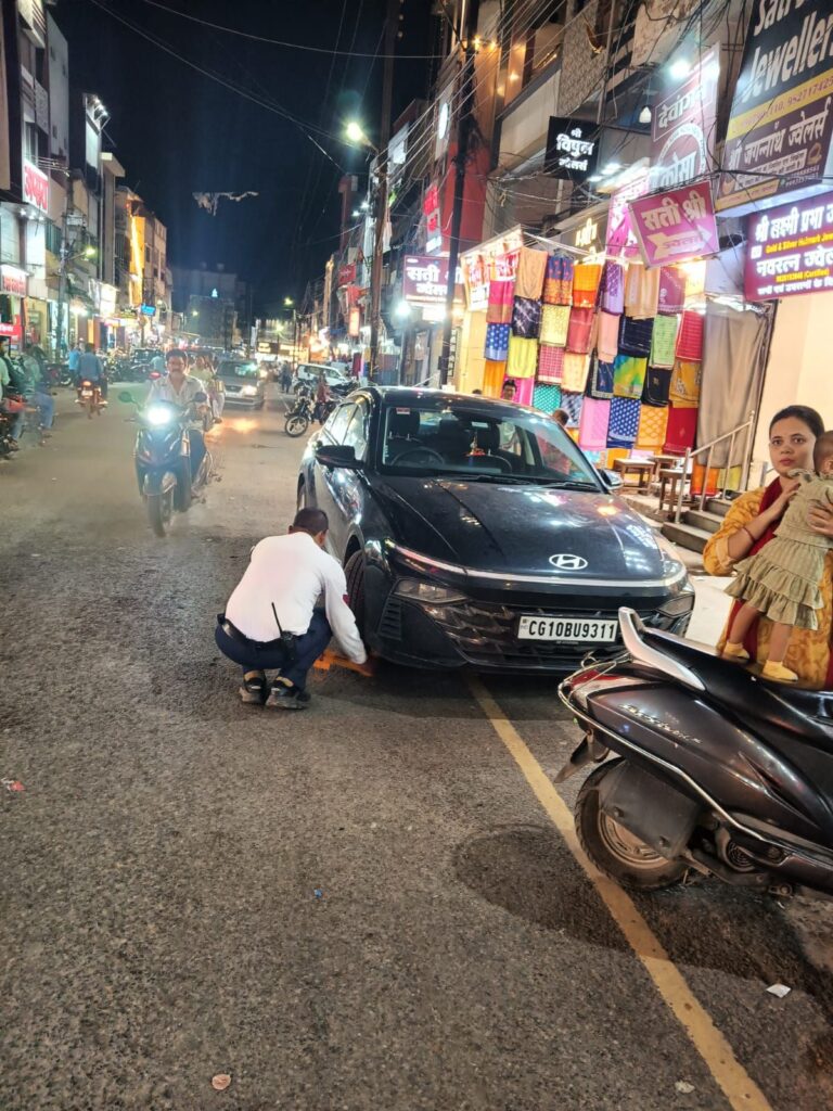 देवकीनंदन चौक, शनिचरी और शहर के अन्य प्रमुख क्षेत्रों में अवैध रूप से नो-पार्किंग में खड़े वाहनों पर आज पैदल पेट्रोलिंग कर कार्रवाई की गई। इस दौरान दर्जनों वाहनों पर व्हील लॉक लगाए गए और कई वाहन लिफ्टर से हटाकर यातायात मुख्यालय लाए गए।