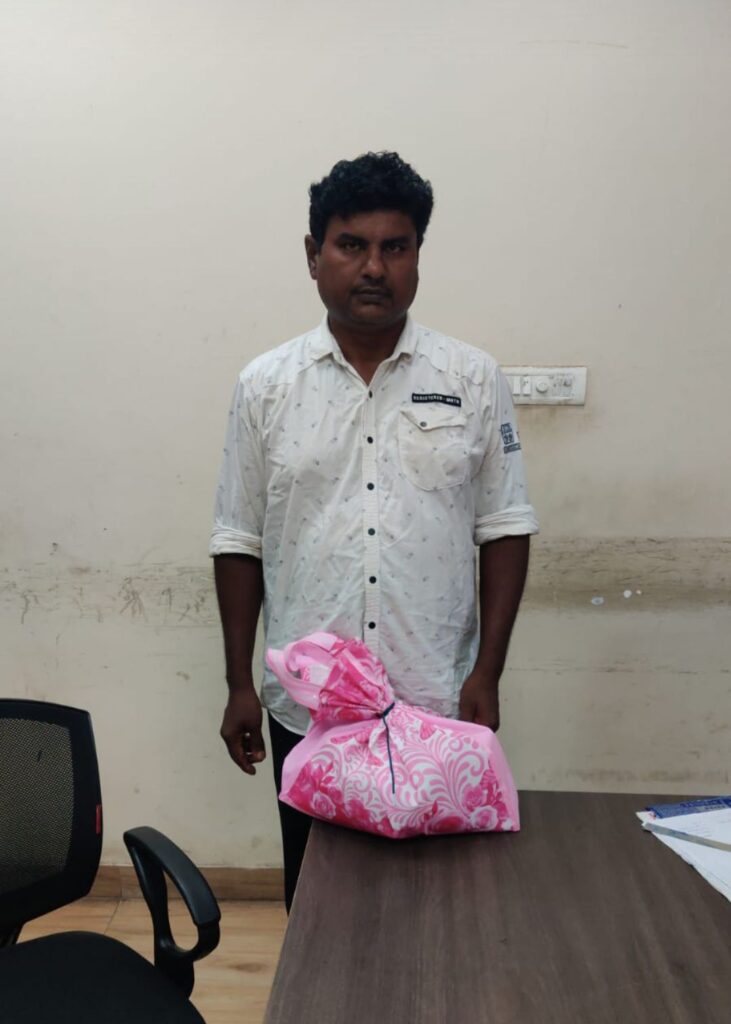 पुलिस महानिरीक्षक रायपुर रेंज रायपुर श्री अमरेश मिश्रा तथा पुलिस उपमहानिरीक्षक एवं वरिष्ठ पुलिस अधीक्षक डॉ. लाल उमेद सिंह के निर्देशानुसार रायपुर पुलिस द्वारा नशे के विरूद्ध विशेष अभियान चलाया जा रहा है, जिसमें रायपुर पुलिस के समस्त पुलिस राजपत्रित अधिकारियों, थाना प्रभारियों सहित प्रभारी एण्टी क्राईम एण्ड सायबर यूनिट को नशे का काला कारोबार करने वाले कारोबारियों की पतासाजी कर कार्यवाही करने एवं इस पर प्रभावी रूप से अंकुश लगाने आवश्यक दिशा निर्देश दिये गये है। जिस पर समस्त पुलिस राजपत्रित अधिकारियों, थाना प्रभारियों एवं एण्टी क्राईम एण्ड सायबर यूनिट की टीम द्वारा मुखबीर लगाकर, पेट्रोलिंग व सूचना संकलन कर नशे का कारोबार करने वाले कारोबारियों के संबंध में सूचना एकत्रित की जा रही है। इसी तारतम्य में दिनांक 14.07.2025 को थाना कोतवाली पुलिस की टीम को सूचना प्राप्त हुई कि थाना कोतवाली क्षेत्रांतर्गत महिला थाना के आगे दिवाल किनारे बने लोहे के सीट के पास एक व्यक्ति अपने पास प्रतिबंधित मादक पदार्थ डोडा रखा है तथा बिक्री करने की फिराक में है। जिस पर वरिष्ठ अधिकारियों के निर्देशन व थाना प्रभारी कोतवाली के नेतृत्व में थाना कोतवाली पुलिस की टीम द्वारा उक्त स्थान पर जाकर मुखबीर द्वारा बताये हुलिये के व्यक्ति को चिन्हांकित कर पकड़ा गया। पूछताछ में व्यक्ति ने अपना नाम शेख अब्दुल कादर उर्फ अब्दुर निवासी तेलीबांधा रायपुर का होना बताया। टीम के सदस्यों द्वारा उसके पास रखें थैले की तलाशी लेने पर थैले में प्रतिबंधित मादक पदार्थ डोडा रखा होना पाया गया। डोडा रखने एवं बिक्री करने के संबंध में वैध दस्तावेज की मांग करने पर उसके द्वारा किसी प्रकार का कोई दस्तावेज प्रस्तुत न कर टीम के सदस्यों को लगातार गुमराह करने का प्रयास किया जा रहा था। जिस पर आरोपी शेख अब्दुल कादर उर्फ अब्दुर को गिरफ्तार कर उसके कब्जे से मादक पदार्थ डोडा लगभग 2.530 किलोग्राम, बिक्री नगदी रकम 1500/- रूपये तथा 01 नग मोबाईल फोन जुमला कीमती लगभग 40,000 / रूपये जप्त कर आरोपी के विरूद्ध थाना कोतवाली में अपराध क्रमांक 139/25 धारा 15, 29 नारकोटिक एक्ट का अपराध पंजीबद्ध कर आरोपी के विरूद्ध कार्यवाही किया गया। प्रकरण में फॉरवर्ड एवं बैकवर्ड लिंकेजेस के आधार पर अन्य आरोपियों के संबंध में विस्तृत पूछताछ जारी है।