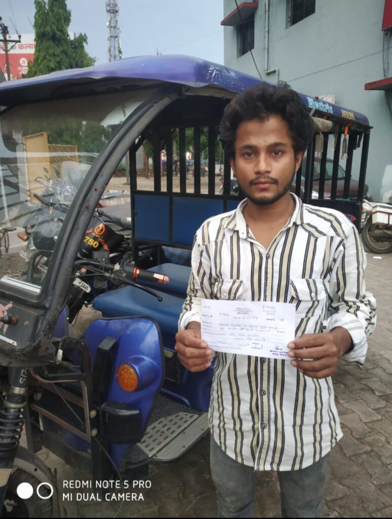 रायपुर,,,,, यातायात पुलिस ने ई-रिक्शा वाहन चालक द्वारा फिल्मी स्टाईल में पहिया उठाकर स्टंट करना एवं स्टंट का रील बनाकर सोशल मीडिया में अपलोड करना महंगा पड़ गया। वायरल वीडियो रायपुर पुलिस के संज्ञान में आते ही तत्काल एक्शन लेते हुए ई-रिक्शा के रजिस्ट्रेशन नम्बर के आधार पर मालक/चालक का पता लगाकर ई-रिक्शा सहित कार्यालय बुलाया गया साथ ही ई-रिक्शा क्रमांक CG04NF-9289 के चालक मोहम्मद मोहसीन, हाउसिंग बोर्ड कालोनी, सेजबहार रायपुर के विरूद्ध लापरवाही पूर्वक खतरनाक ढंग से स्टंट करने एवं बिना लाइसेंस के तहत मोटरयान अधिनियम की धारा 184, 3/181 के तहत चालानी कार्यवाही करते हुए 3000 रूपये का जुर्माना किया गया साथ ही भविष्य में दोबारा गलती नहीं करने हेतु शपथ दिलाई गई