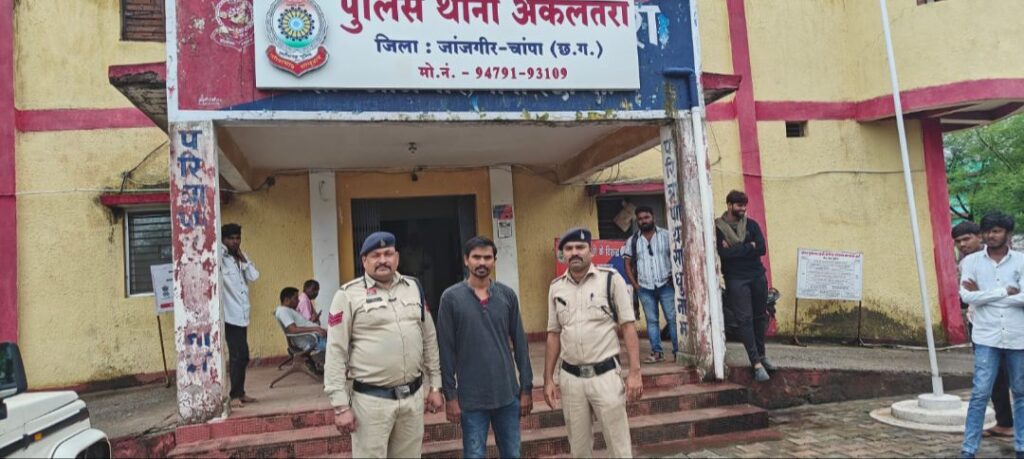 आरोपी घटना घटित कर फरार था जिसका थाना अकलतरा पुलिस द्वारा पुलिस अधीक्षक जांजगीर चांपा श्री विजय कुमार पाण्डेय (IPS) के निर्देशन में लगातार पातासाजी की जा रही थी। इसी कड़ी में थाना अकलतरा पुलिस द्वारा अतिरिक्त पुलिस अधीक्षक श्री उमेश कुमार कश्यप के मार्ग दर्शन में तथा SDOP श्री प्रदीप कुमार सोरी के नेतृत्व में आरोपी को उसके सकुनत से पकड़ा जिसको हिरासत में लेकर घटना के संबध में पूछताछ किया तो जुर्म स्वीकार किए जाने से विधिवत गिरफ्तार न्यायिक रिमांड पेश उपरांत जिला जेल दाखिल किया जा चुका है।