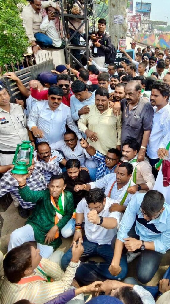 बिलासपुर,,, जिला कांग्रेस और तिफरा ब्लॉक कांग्रेस कमेटी की अगुवाई में आज बिजली विभाग कार्यालय के सामने जिला कांग्रेस अध्यक्ष विजय केसरवानी एवं विजय पांडे की अगुवाई में कांग्रेस नेताओं ने बिजली दर वृद्धि के विरोध में जोरदार धरना‑प्रदर्शन और रोड शो किया! हाथ में लालटेन लेकर प्रदेश सरकार की बिजली नीतियों की निंदा की और कहा कि सरकार ने जनता को “अंधेरे युग” में वापस खड़ा कर दिया है!!!