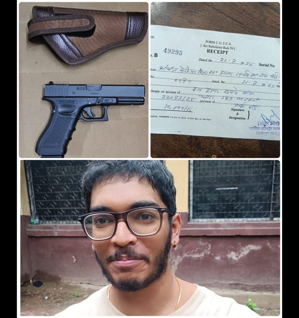 अर्चित केडिया पिता स्व.उत्तम केडिया उम्र 19 साल पता रामावर्ड कालोनी रायपुर रोड बिलासपुर थाना सिरगिट्टी बिलासपुर छ0ग0 जप्त:- एक नग एयर गन। 000
