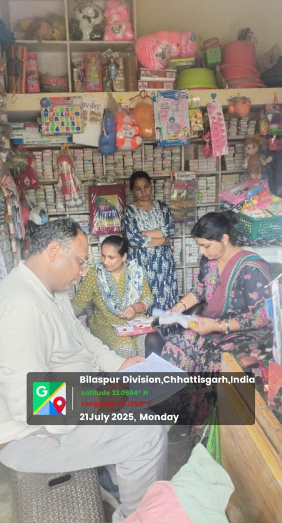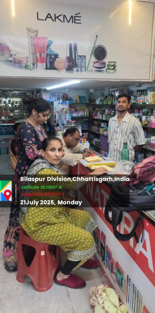 इसी प्रकार मेसर्स मां कॉस्मेटिक एवं जनरल स्टोर, मंगला, मेसर्स मनोज फैंसी एंड स्टेशनरी, मंगला बस्ती एवं मेसर्स आदित्य ट्रेडिंग, तेलीपारा, बिलासपुर में कॉस्मेटिक सैंपल गुणवत्ता जांच हेतु लिए गए! आकाश बैंगल्स एवं कॉस्मेटिक, तेलीपारा में बिना औषधि लाइसेंस के औषधियों का भंडारण प्राप्त हुआ!