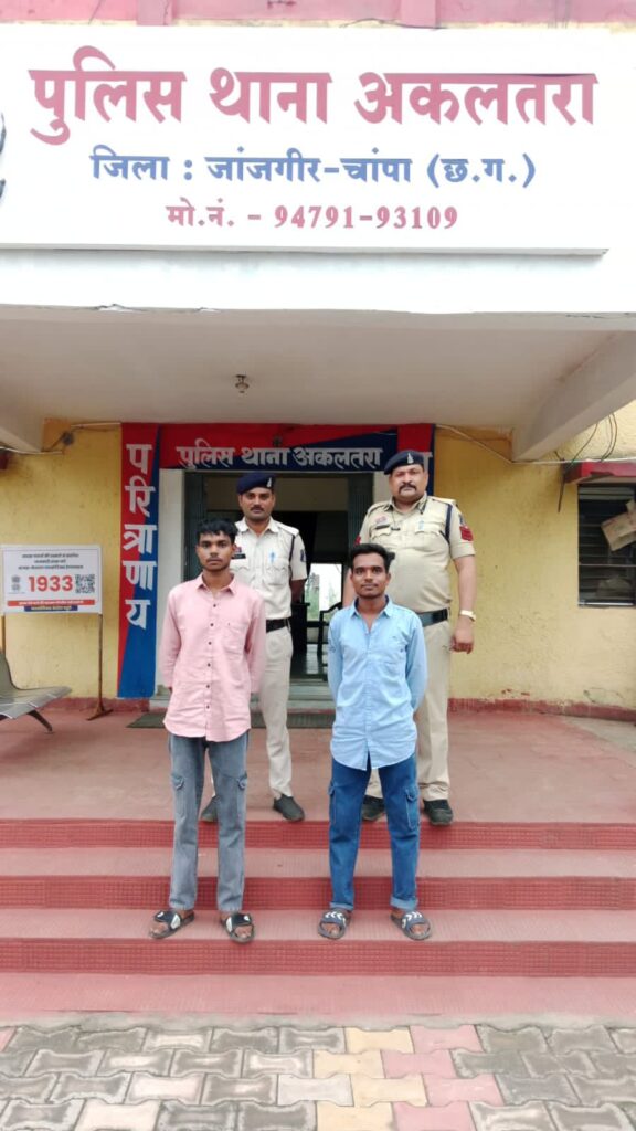 बिलासपुर,,,, अकलतरा थाना क्षेत्र में रात्रि लूटपाट के दो फरार आरोपियों लाकेश्वर वैष्णव और चंदन वैष्णव को पुलिस ने मुखबिर की सूचना पर गिरफ्तार कर न्यायिक रिमांड पर भेजा। इससे पूर्व चार आरोपी गिरफ्तार हो चुके हैं। पुलिस की तत्परता से लूट प्रकरण में कुल छह आरोपी पकड़े गए।
