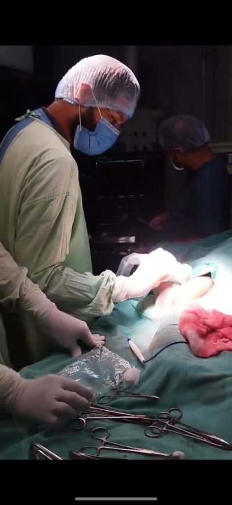 स्थिति की गंभीरता को देखते हुए डॉ. ओ.पी. राज एवं डॉ. बी.डी. तिवारी ने ऑपरेशन का निर्णय लिया! परंतु ऑपरेशन के दौरान चीरफाड़ को न्यूनतम रखने और तारों की सटीक जगह जानने के लिए रेडियोलॉजी विभाग की मदद ली गई! विभागाध्यक्ष डॉ. अर्चना सिंह के निर्देशन में असिस्टेंट प्रोफेसर डॉ. अमन अग्रवाल ने ऑपरेशन थिएटर में ही लाइव सोनोग्राफी के माध्यम से लोहे के तारों की सटीक स्थिति चिन्हित की! इसके आधार पर सर्जनों ने बहुत ही कम चीरफाड़ कर सफलतापूर्वक सभी चारो तारों को निकाल दिया गाया मेल सर्जरी वर्ड मे इलाज जारी है!