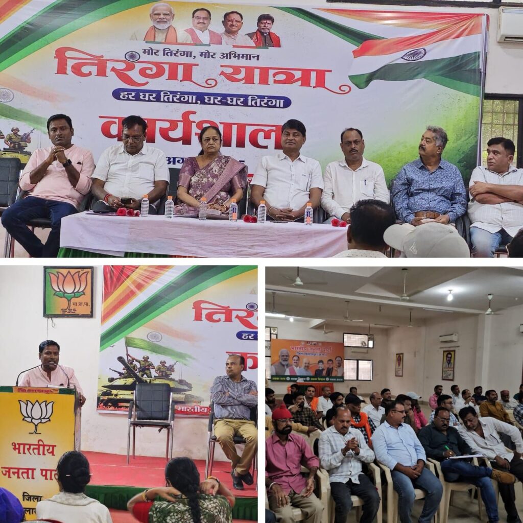 साथी 13 से 15 अगस्त तक सभी घरों प्रतिष्ठानों पर तिरंगा फहराना पार्टी कार्यकर्ता द्वारा सुनिश्चित किया जाए जहां तक संभव हो सके बच्चों के हाथ से ध्वजारोहण करवाया जाए और 15 अगस्त को शाम को तिरंगे को सम्मान पूर्वक उतरना सुनिश्चित किया गया है! 12 से 14 अगस्त तक स्वतंत्रता संग्राम से जुड़े स्मारकों युद्ध स्मारकको और स्वतंत्रता आंदोलन से जुड़ी महत्वपूर्ण जगह के आसपास स्वच्छता अभियान चलाया जाना है! इस अवसर पर मंडल के अध्यक्ष देवेंद्र पाठक ने कहा कि हम सबको मिलकर कार्यकर्ता व नागरिकों के साथ उपरोक्त बताई गई तिथि में मंडल में तिरंगा यात्रा को भव्य रूप से देशभक्ति गीत और संगीत के साथ पूरे मंडल में भ्रमण करना है! इस अवसर पर पूर्व मंडल अध्यक्ष अरविंद बोलर ने भी अपना मार्गदर्शन दिया, इस अवसर पर महामंत्री श्रीकांत सहारे , जोन अध्यक्ष रंगा नादम, पार्षद आशीष गुप्ता सहित कार्यक्रम के संयोजक मनीष दीक्षित सह संयोजक अनुरगिनी कश्यप सह संयोजक शंकर अहिरवार सह संयोजक उमेश पाण्डेय, जगदीश पाण्डेय, योगेश बोले, राकेश सिंह ठाकुर, राजकुमार पमनानी, दलजीत सिंह, राजु शर्मा, कमल कौशिक, शूभम तिवारी, शेखर बाजपेई, राजकुमार केंवट, निरंजन गुप्ता, विरेन्द्र शाह, जितेंद्र सोनी, किर्ति वर्धन गुप्ता, आदित्य यादव, राजेन्द्र सिंह चौहान, संजय केशरवानी,दिलेश्वर यादव, विष्णु देवांगन, विजय सोनी, अखिलेश बोले, नवनीत गोरख, सुमित पाठक, युवांश पाठक, सुदर्शन रजक, विनय निर्मलकर, शिव कुमार, दिनेश चौधरी, सुनील विश्वकर्मा, ऋषी सोनी, राहुल कश्यप, विजय सोनी जाजु, प्रेम रायकर, सन्नी श्रीवास्तव, अवि साहु, राजेश गुप्ता, संजय यादव, स्वरुप केशरवानी, गिरीश देवांगन, श्रीमति उमा राजगीर, आकांछा जनोकर, अनिता वर्मा, उषा साहु,