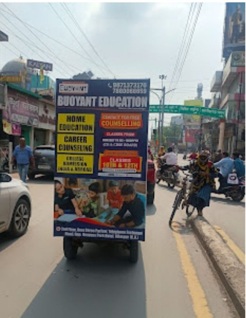 बिना अनुमति और मापदंड के लगाए जा रहे इन विज्ञापनों से न सिर्फ नगर निगम को राजस्व का भारी नुकसान हो रहा है! बल्कि राहगीरों की जान पर भी खतरा मंडरा रहा है! ई-रिक्शा पर चारों तरफ फ्लेक्स बैनर लगाकर शहर में बेधड़क प्रचार करना नया ‘ट्रेंड’ बन गया है! न अनुमति, न चालक के पास लाइसेंस—यह मोटर वाहन अधिनियम का खुला उल्लंघन है! इसके बावजूद न परिवहन विभाग हरकत में है! न नगर निगम!