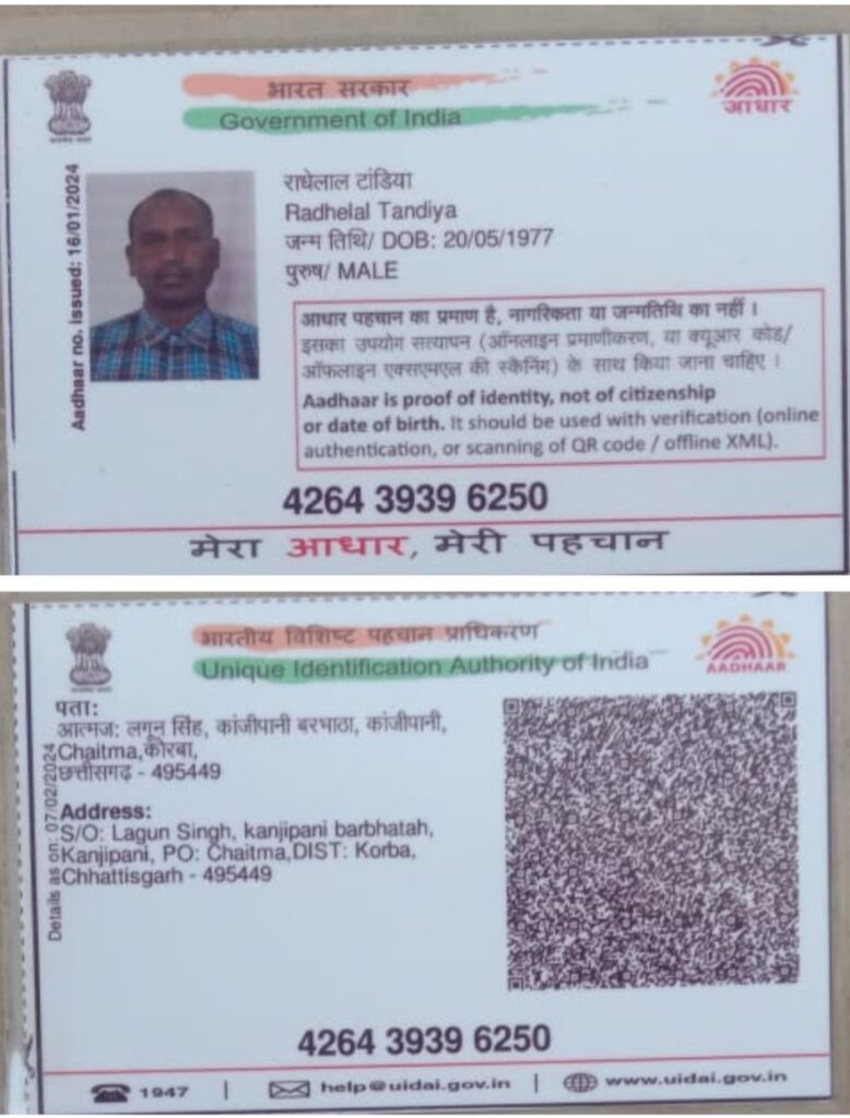 सबसे हैरान करने वाली बात ये है! कि रजिस्ट्रेशन के दस्तावेज़ में किसान का असली आधार नंबर (4264 3939 6250) मौजूद था! जबकि असली किसान राधेलाल का कहना है! कि उसने केवल जाती प्रमाण पत्र बनवाने के लिए एक बार अपना आधार दिया था! अब सवाल ये है! कि एक ही आधार नंबर से दो आधार कार्ड कैसे जारी हुए सवाल ये है!!!