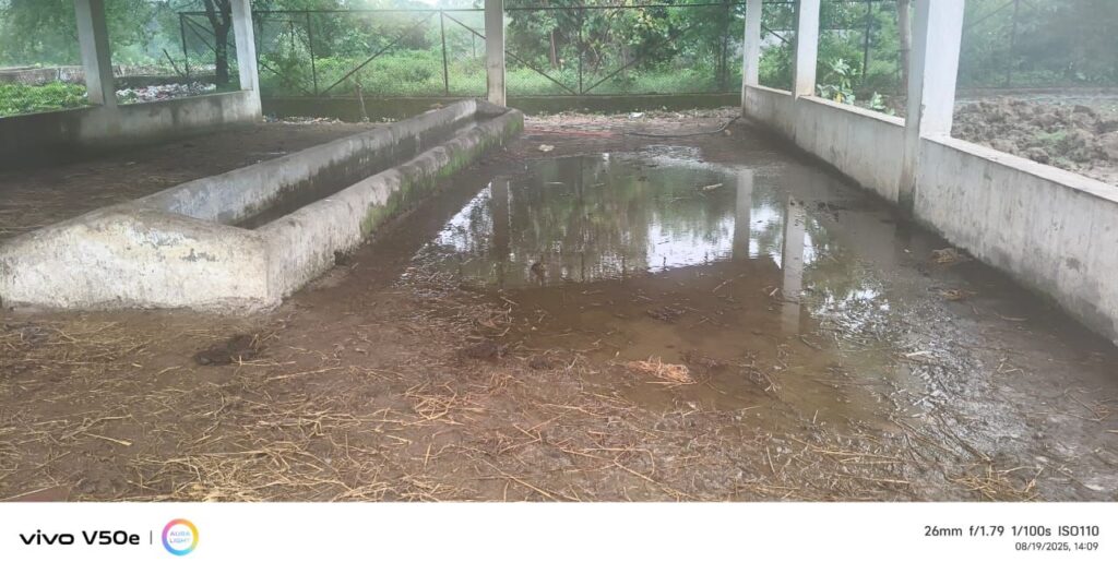 ये शेड खुद कीचड़ गोबर और गौ मूत्र से अटे पड़े है! न शेड के अंदर गायों के बैठने की जगह है! न मैदान में मैदान तो खुद दलदल में तब्दील है!