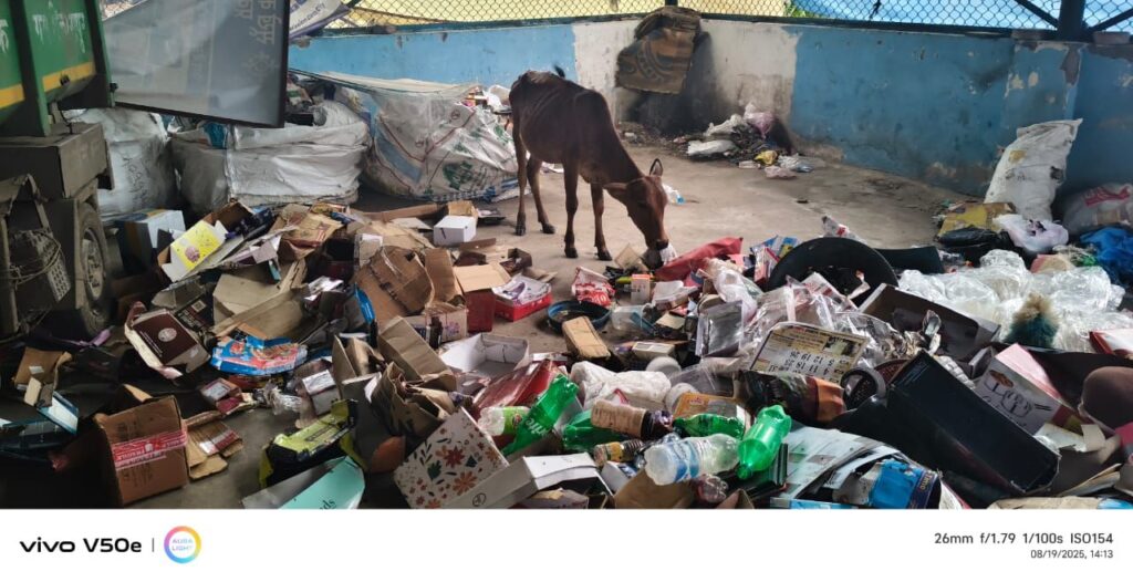 गंदगी के कारण गाय बीमार हो रही है! मर रही है! लेकिन किसी को इसकी चिंता नहीं है! इस अव्यवस्था को लेकर उनमें आक्रोश है!