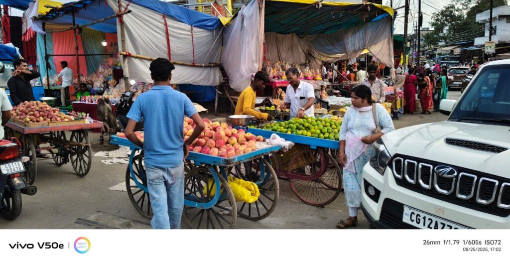 बिलासपुर,,, अतिक्रमण कार्रवाई के नाम पर निगम का अमला बेगारी और उगाही कर रहा है! अमले के जाते ही कारोबारी फिर सड़क पर ठेले और फ़ुटपाट पर शो रूम सजा ले रहे है!