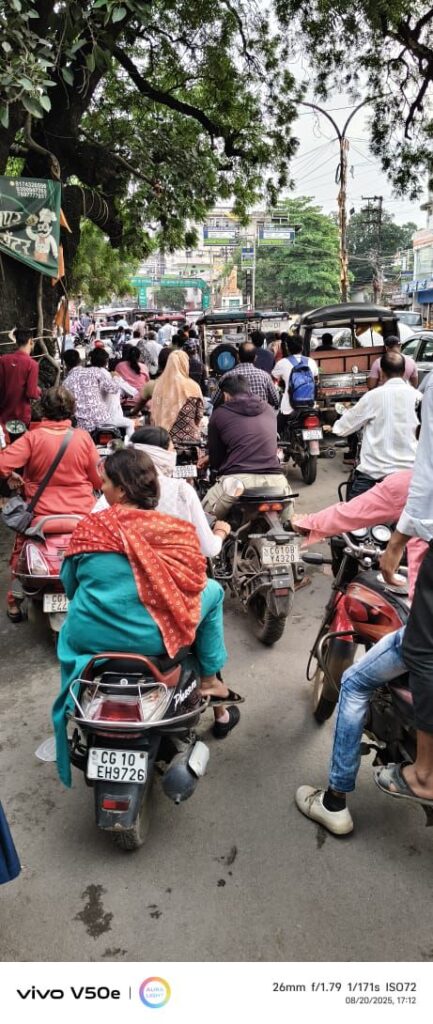 गणेशोत्सव चल रहा सड़को पर भगवान विघ्नविनाशक के पंडाल पर दर्शनार्थियों की भीड़ लग रही, लोग शाम रात को परिवार लेकर पंडालों में जाने निकल रहे पर जाम ही जाम है! रविवार रात भी गांधी चौक से तोरवा टिकरापारा इलाके में गणेशोत्सव की धूम रही पूरे दायरे की सड़क पर जाम लगा रहा, जाम में फंसे आम राहगीर और दर्शनार्थी कहते रहे क्या आईटीएमएस फेल हो गया…?