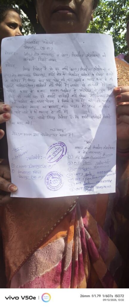 CMHO कार्यालय में बकाया वेतन की मांग करने पहुंची बंधवापारा स्वस्थ केंद्र के मितानिनों का कहना है! कि स्वस्थ महकमे ने आधे मितानिनों को तो वेतन का भुगतान कर दिया है! आधे वेतन के लिए भटक रहे है! महकमे के बड़े अफसर ऐसा करके उनमें फुट डालने की कोशिश कर रहे है!!!