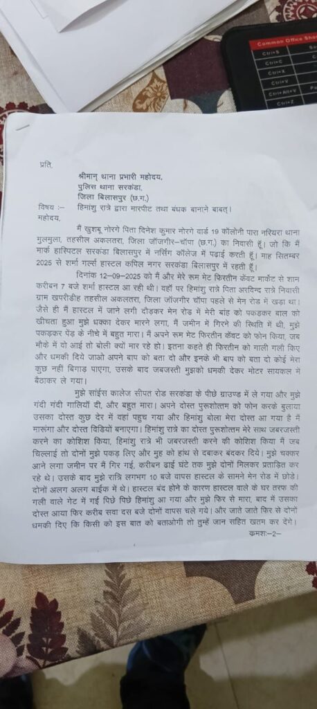 बालिका का आरोप है कि इसके बाद आरोपी युवक ने तस्वीरों को वायरल करने की धमकी देनी शुरू कर दी। वह आए दिन उसे डराता और धमकाता रहा। हाल ही में साइंस कॉलेज मैदान में आरोपी युवक ने उसके साथ मारपीट भी की। इस घटना के बाद बालिका ने हिम्मत जुटाकर सरकंडा थाने में शिकायत दर्ज कराई है।बालिका का कहना है कि आरोपी युवक लगातार उसे परेशान कर रहा था और जबरदस्ती करने का दबाव बना रहा था। उसने पुलिस से सख्त कार्रवाई करने की मांग की है ताकि भविष्य में ऐसी घटनाएं दोबारा न हों।सामाजिक संगठनों ने भी इस घटना पर चिंता जताई है। उनका कहना है कि सोशल मीडिया पर इस तरह की घटनाएं लगातार बढ़ रही हैं, जिससे किशोरियों और युवतियों की सुरक्षा पर खतरा मंडरा रहा है।